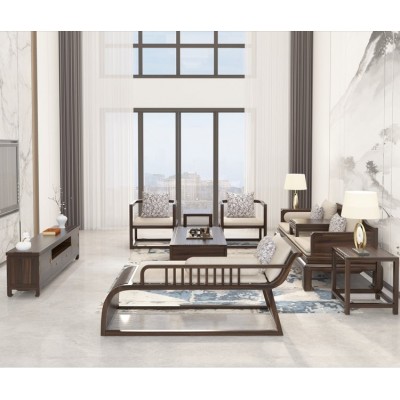 新中式实木沙发组合禅意现代简约中式大户型家用客厅木质沙发家具