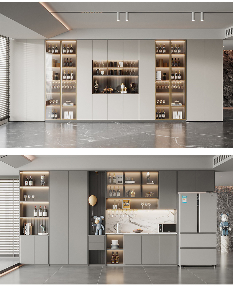 餐边柜全屋定 制酒柜一体靠墙高柜实木多层板餐厅多功能收纳柜 1平方米