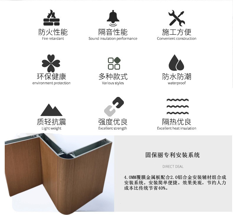 保、耐候、优越的加工性能、便捷安装及饰面纹路和异形产品可定制等特点。更多请