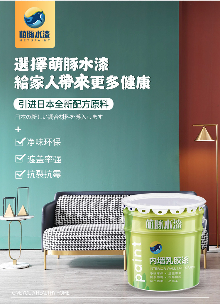 萌豚家用防水内墙漆室内水性乳胶漆涂料白色油漆环保净味型儿童漆