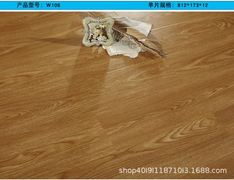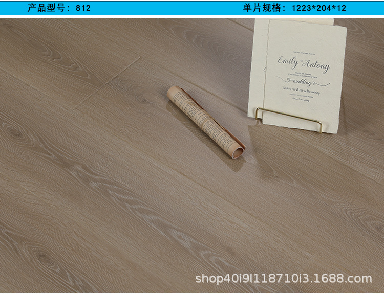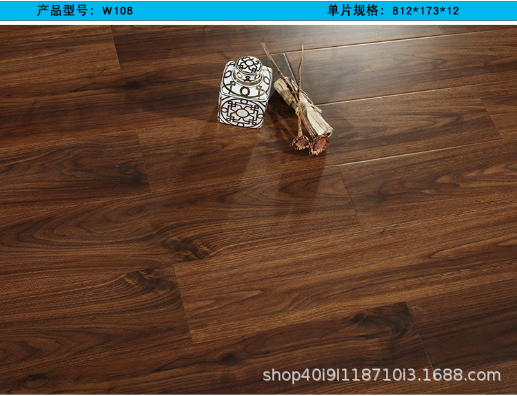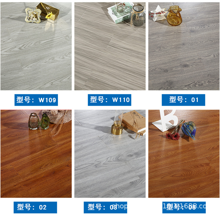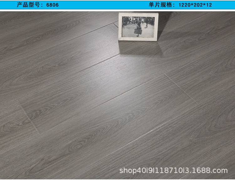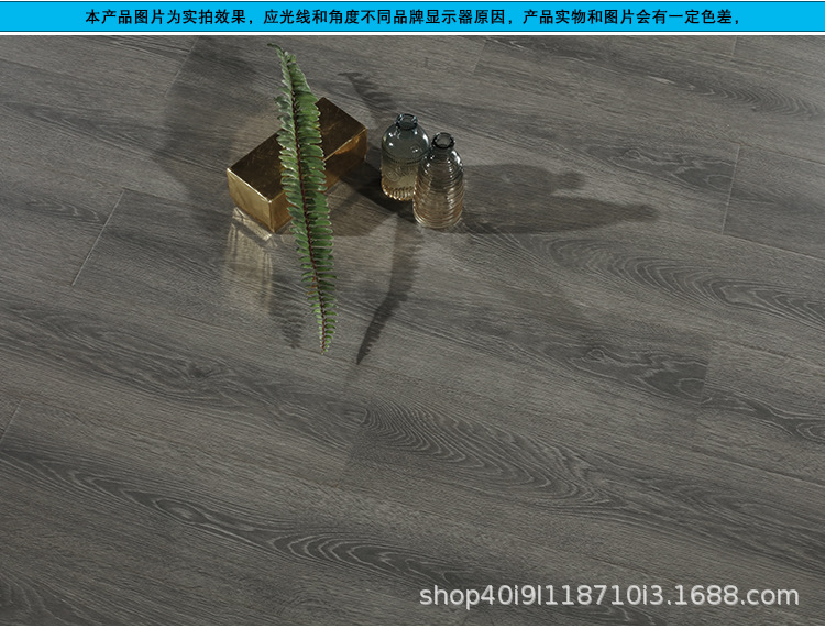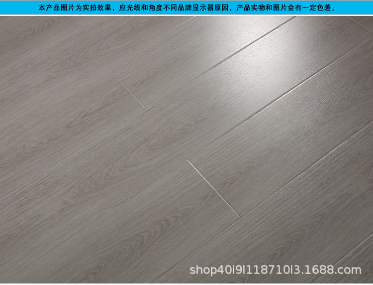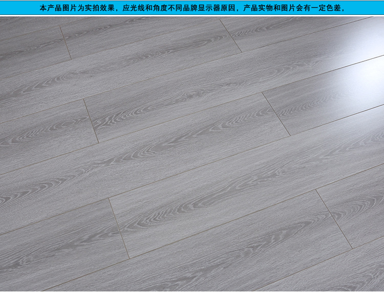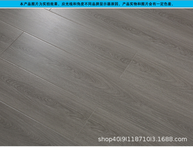 强化复合木地板工厂直销批发耐磨防水灰色原木锁扣防滑E1家用地板 1平方米