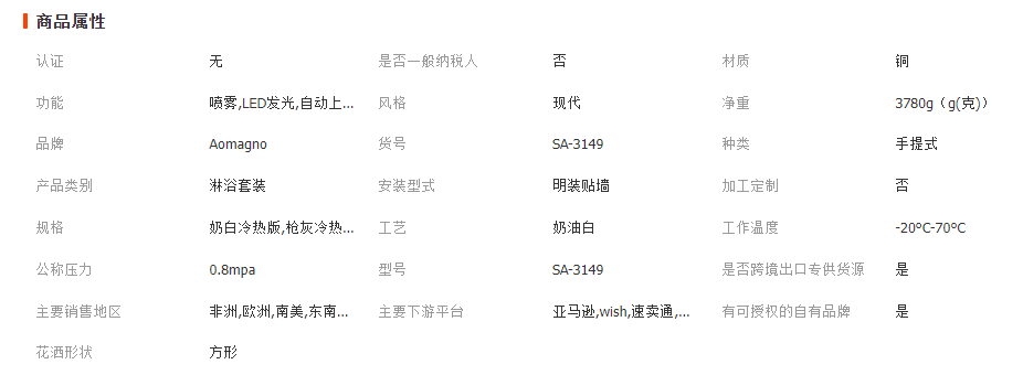德国Aomagno卫浴浴室轻奢奶白恒温淋浴花洒套装SPA腰喷增压大置物 1件