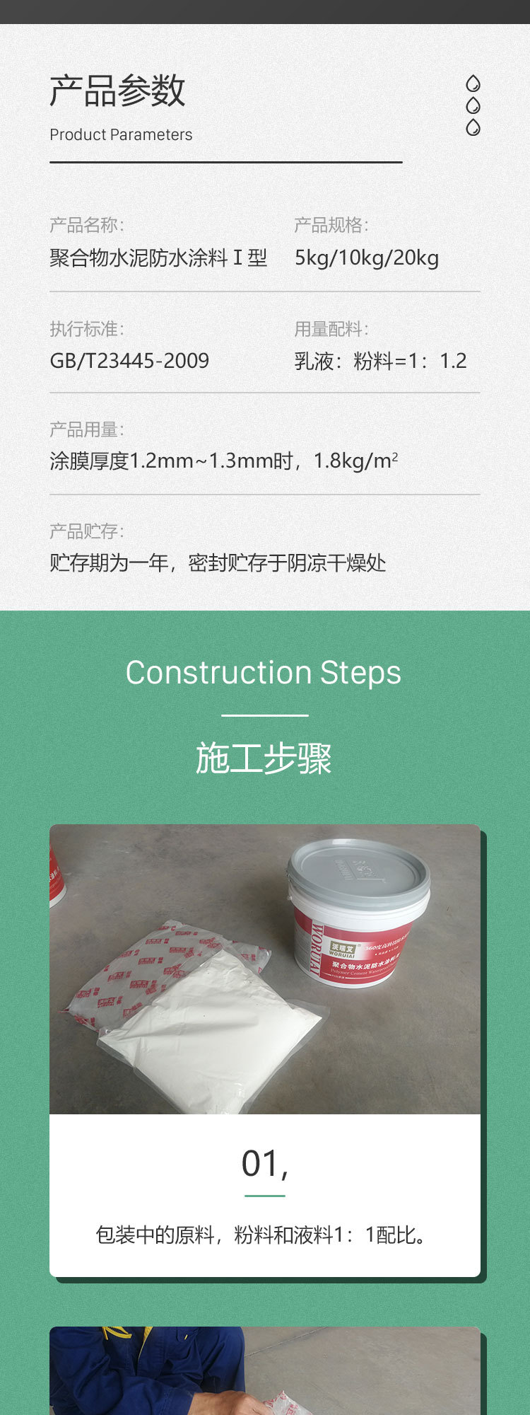 聚合物水泥防水涂料I型 JS新型防水材料墙地面屋面阳台抗冻融