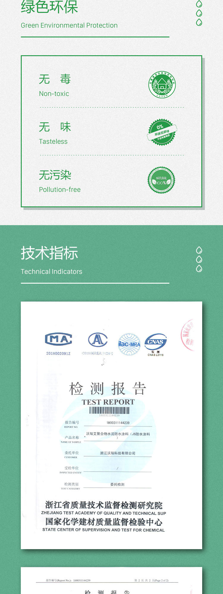 沃瑞艾柔韧型JS聚合物水泥防水涂料II型客厅厨房卫生间水池防水层
