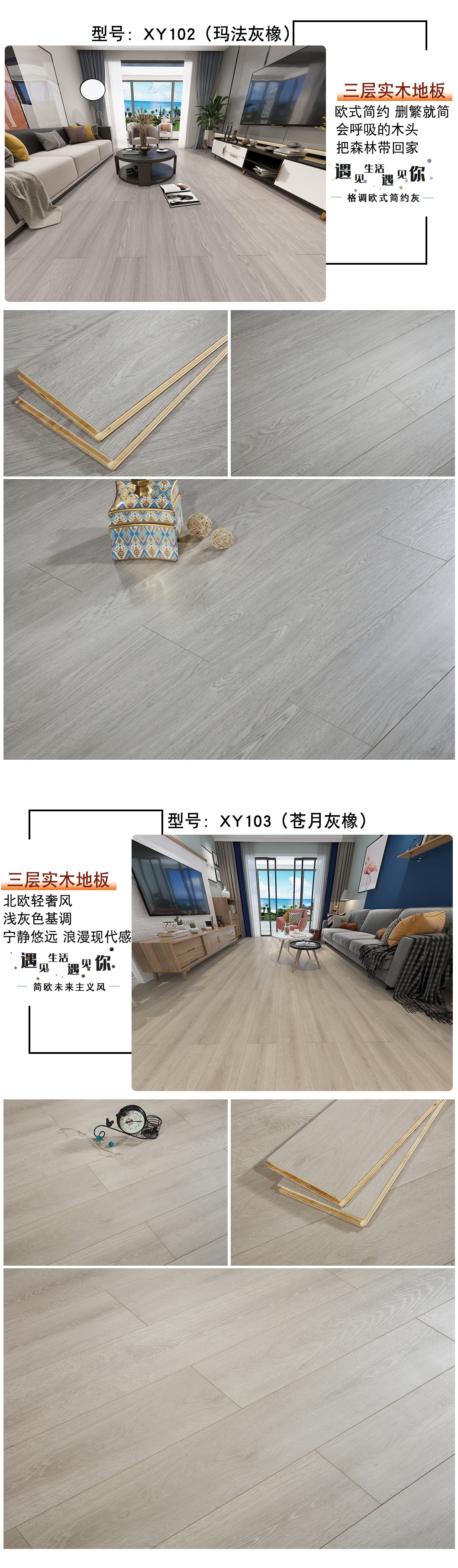 北欧灰色家装室内 15mm多层实木复合木地板 地热地暖锁扣封蜡防潮