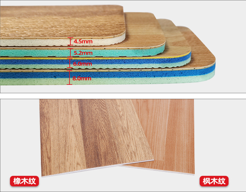 | 颜色 | 宝石纹3.5mm,宝石纹4.5mm,宝石纹6.0mm,宝石纹8.0mm,钻石纹4.5mm,钻石纹5.5mm,钻石纹7.0mm,小石纹4.5mm,小石纹5.2mm,小石纹6.0mm,蛇皮纹4.5mm,新室外地胶5.0mm,布纹4.5mm,布纹5.0mm,晶莹布纹5.2mm,沙地纹4.5mm,沙地纹5.0mm,水晶沙4.5mm,水晶沙5.0mm,枫木纹1代4.5mm,枫木纹1代4.5蓝色,橡木4.5mm,灰枫木4.8mm,孔雀石4.8mm,无双枫木4.8mm,无双枫木5.2mm,枫木纹1代6.0mm,枫木8.0mm,工艺定制4.5mm,工艺定制6.0mm,舞蹈专用地板5.2mm,多功能地板4.0mm | 规格 | 木纹4.5mm |