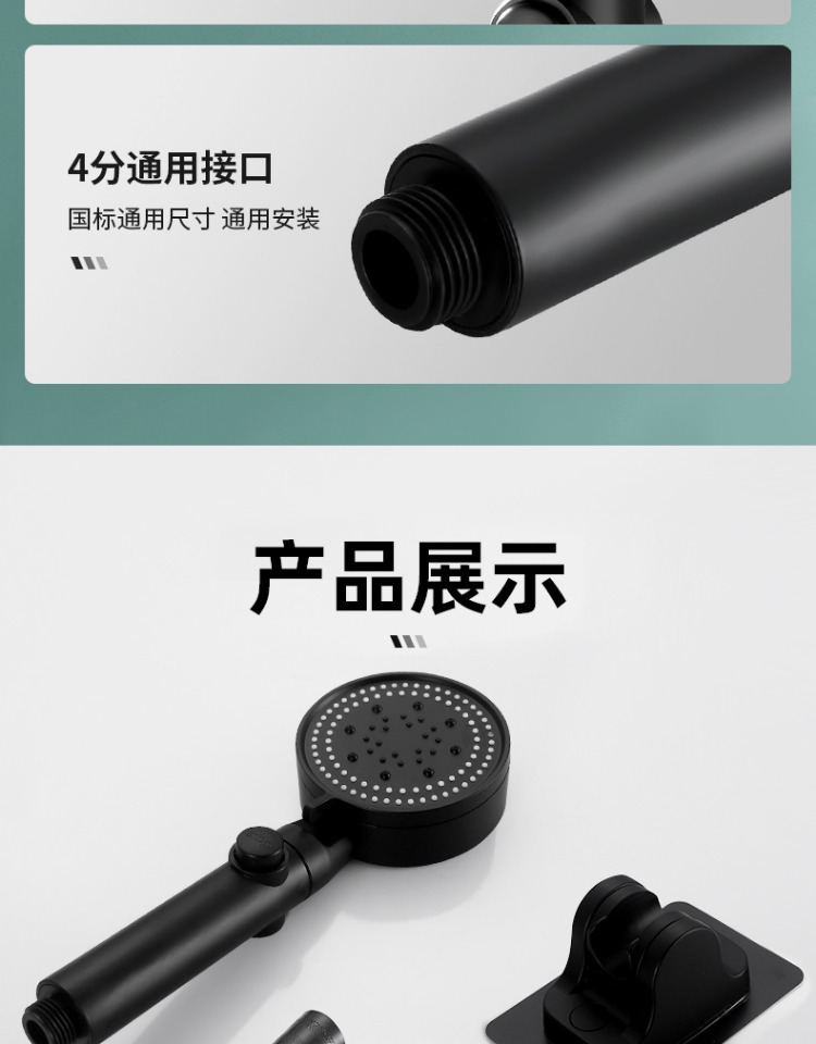 增压手持花洒喷头黑色多功能浴室淋浴淋雨一键止水莲蓬头批发套装