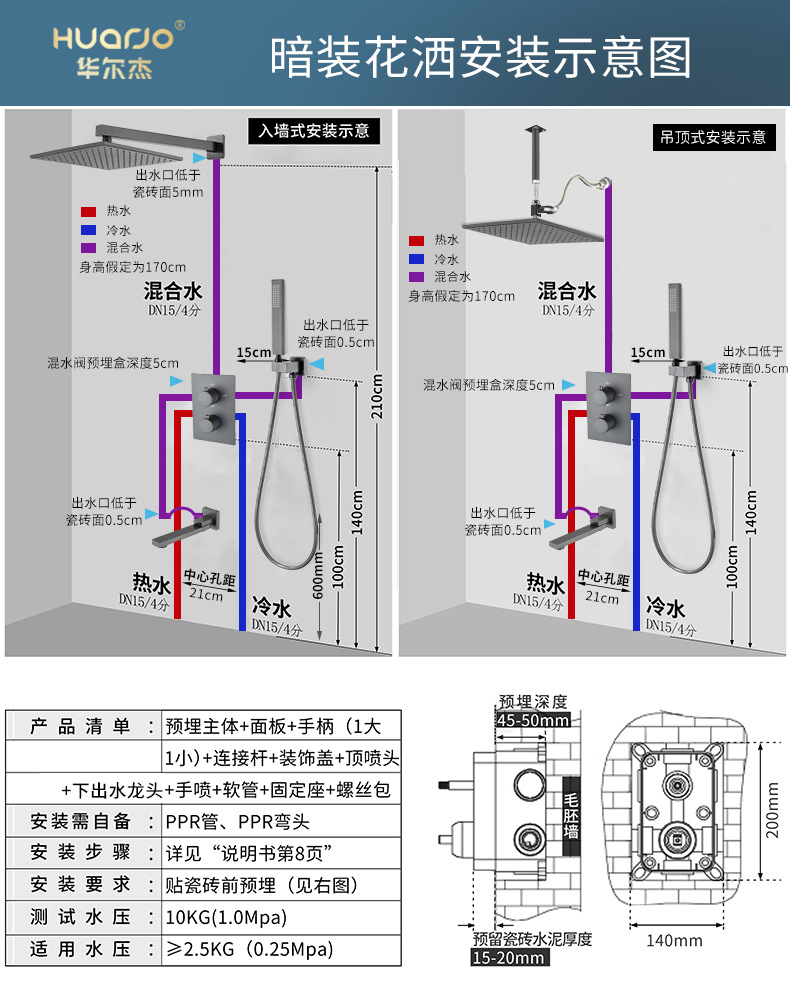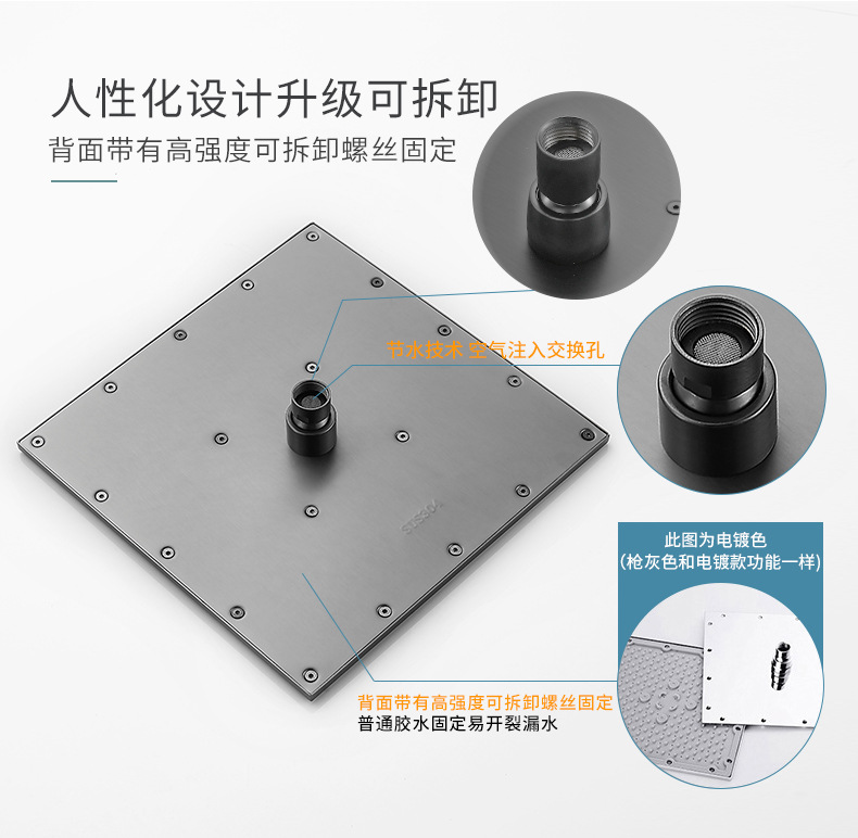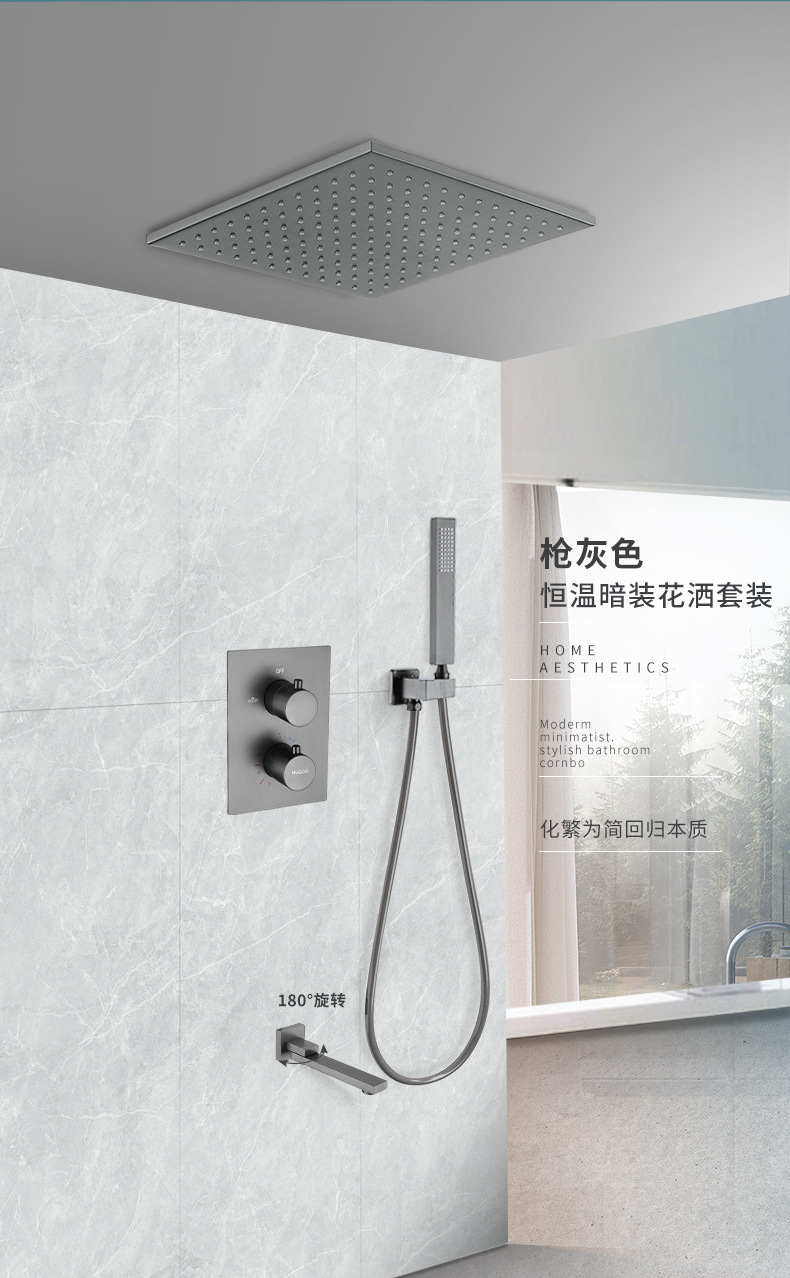 暗装入墙式花洒家用卫生间恒温暗藏隐藏嵌入式枪灰色淋浴花洒套装