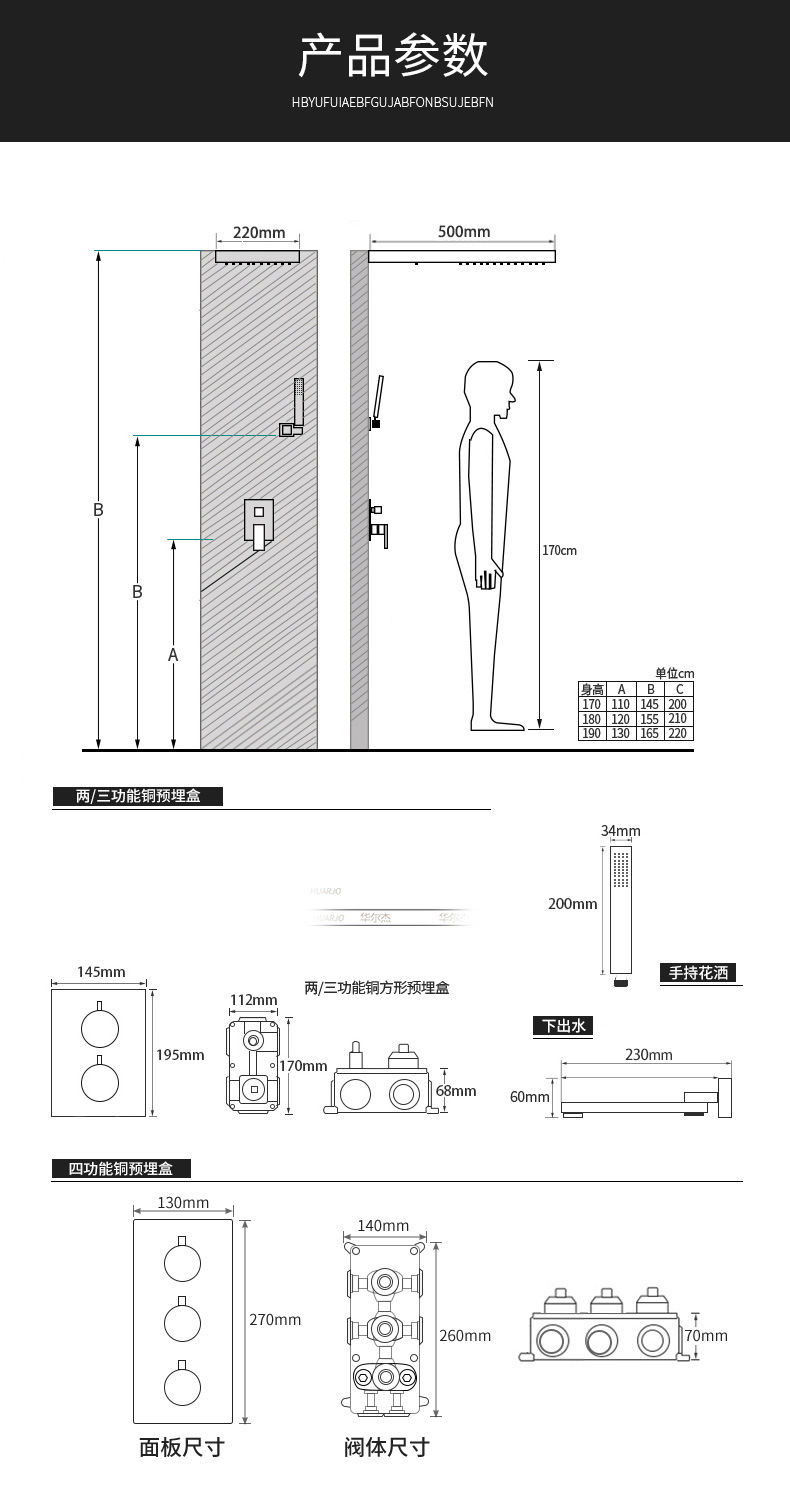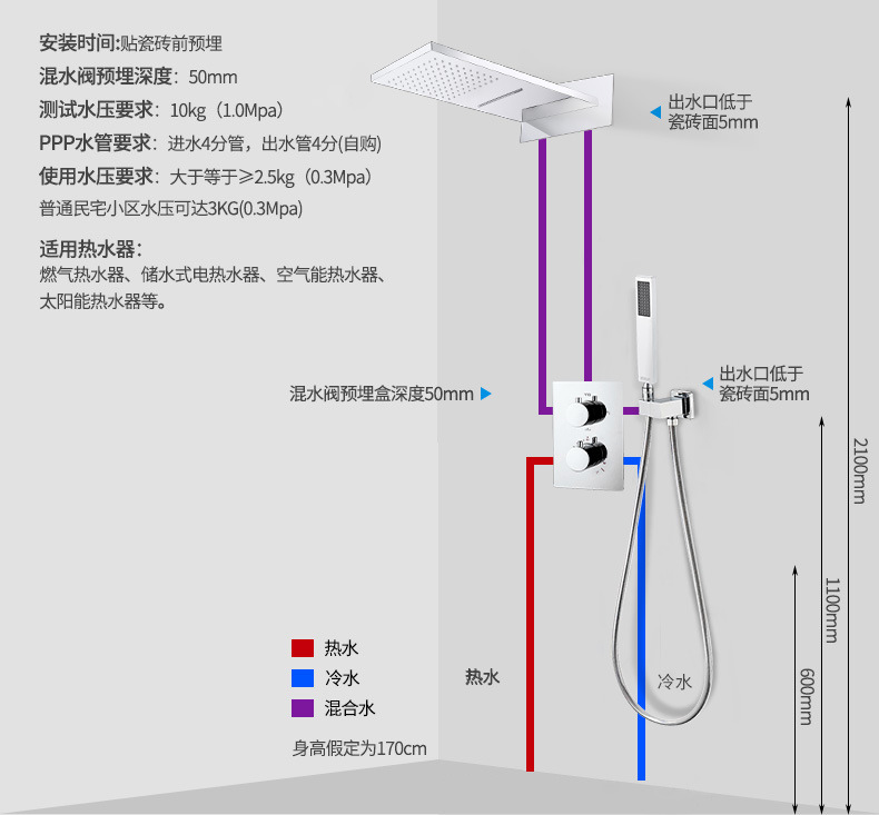 暗装花洒入墙式恒温家用浴室暗藏隐藏飞瀑雨淋嵌入式淋浴花洒套装