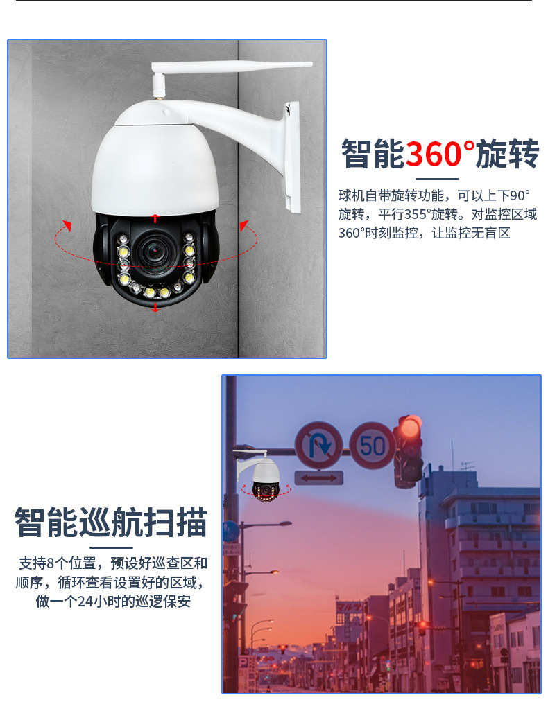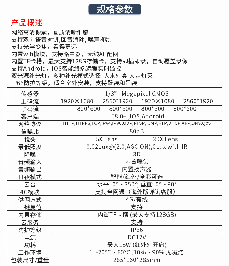 室外无线监控摄像头 30倍变焦高清360全景语音报警4G太阳能监视器