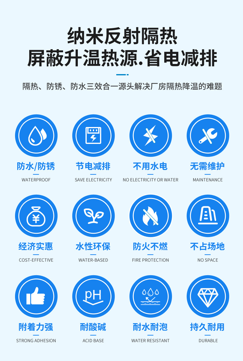 隔热涂料水泥彩钢隔热漆屋顶防晒反射隔热漆隔热漆房顶防晒涂料彩钢瓦外墙玻璃反射材料屋顶隔热防水防晒降温