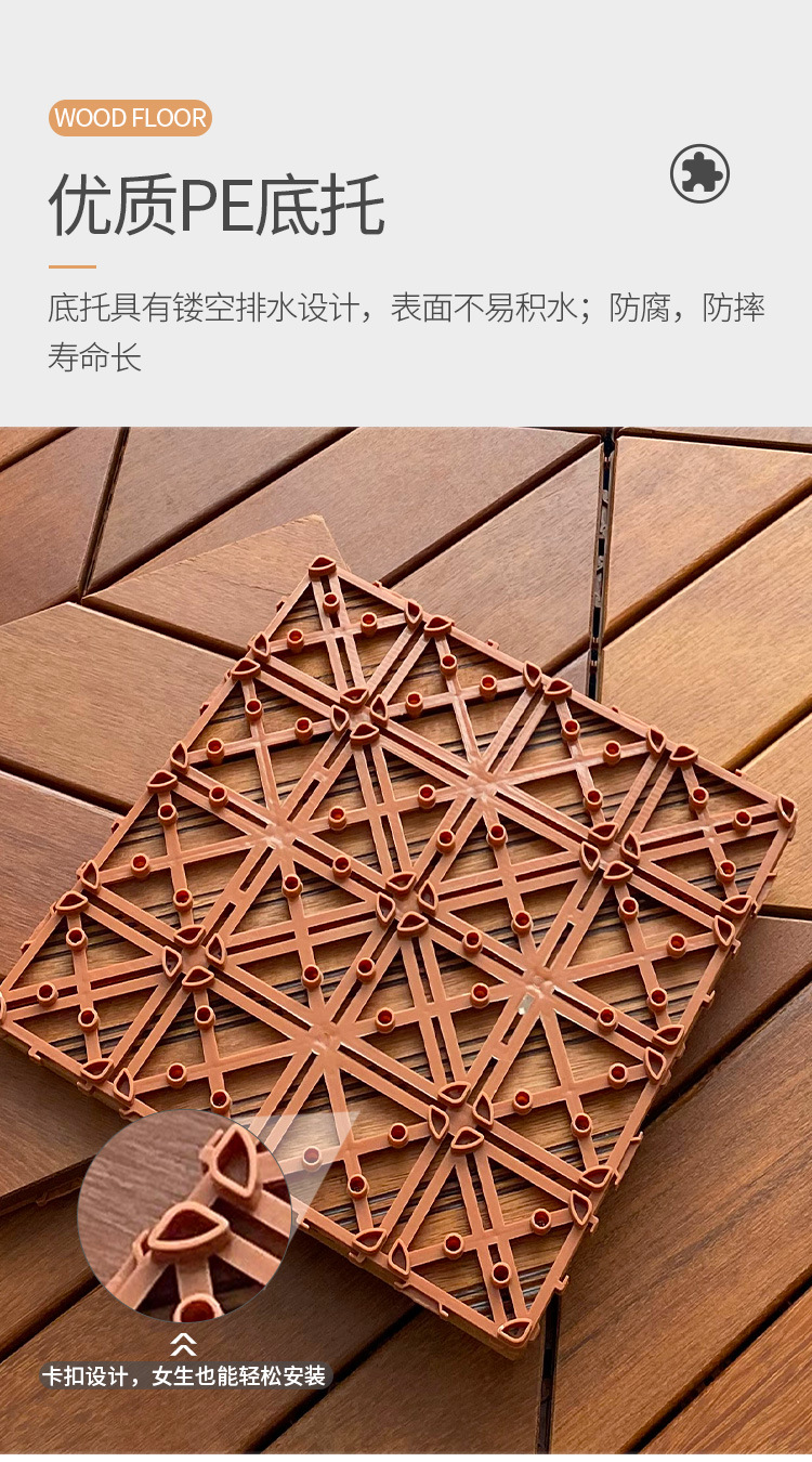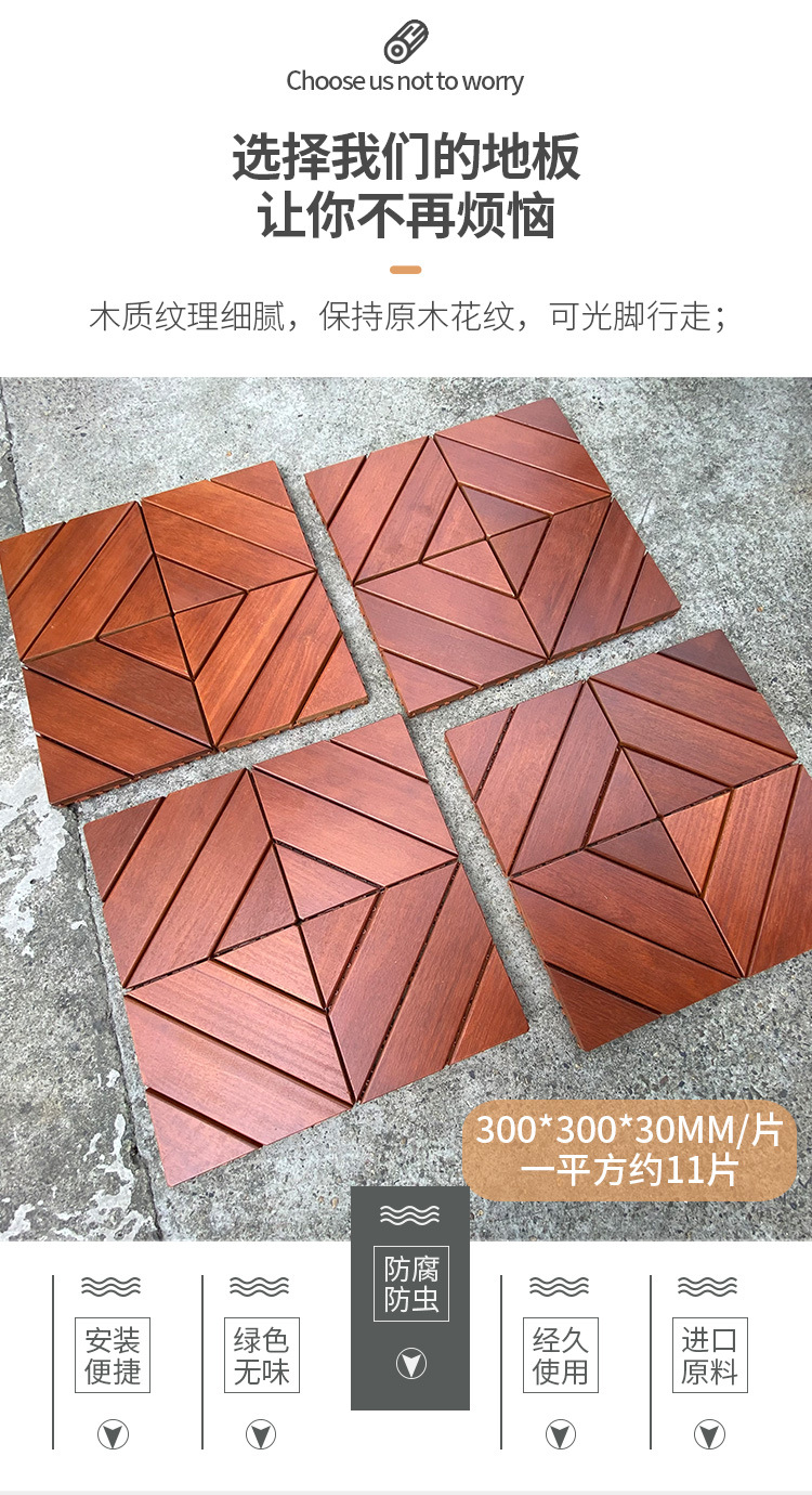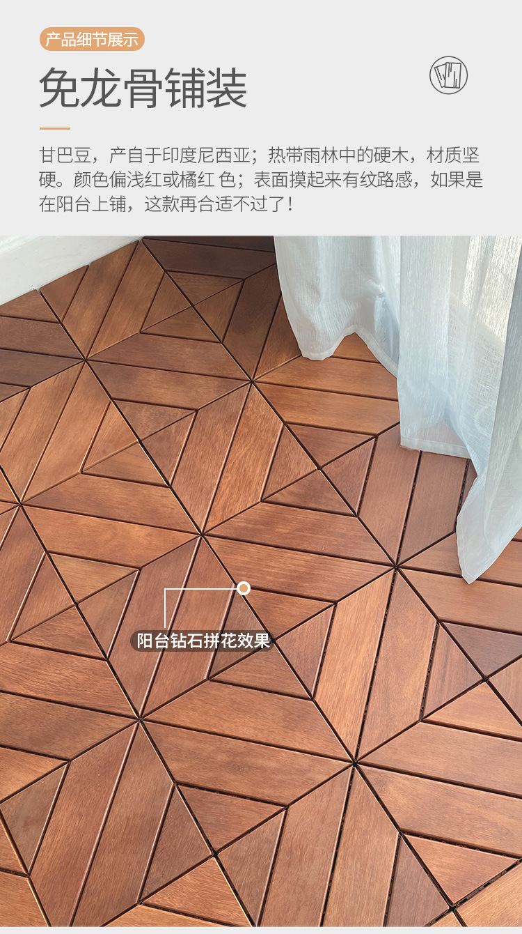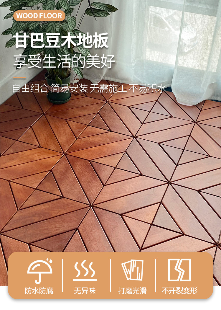 甘巴豆鱼骨斜拼实木地板户外露台阳台花园室外拼装接地面铺设花拼