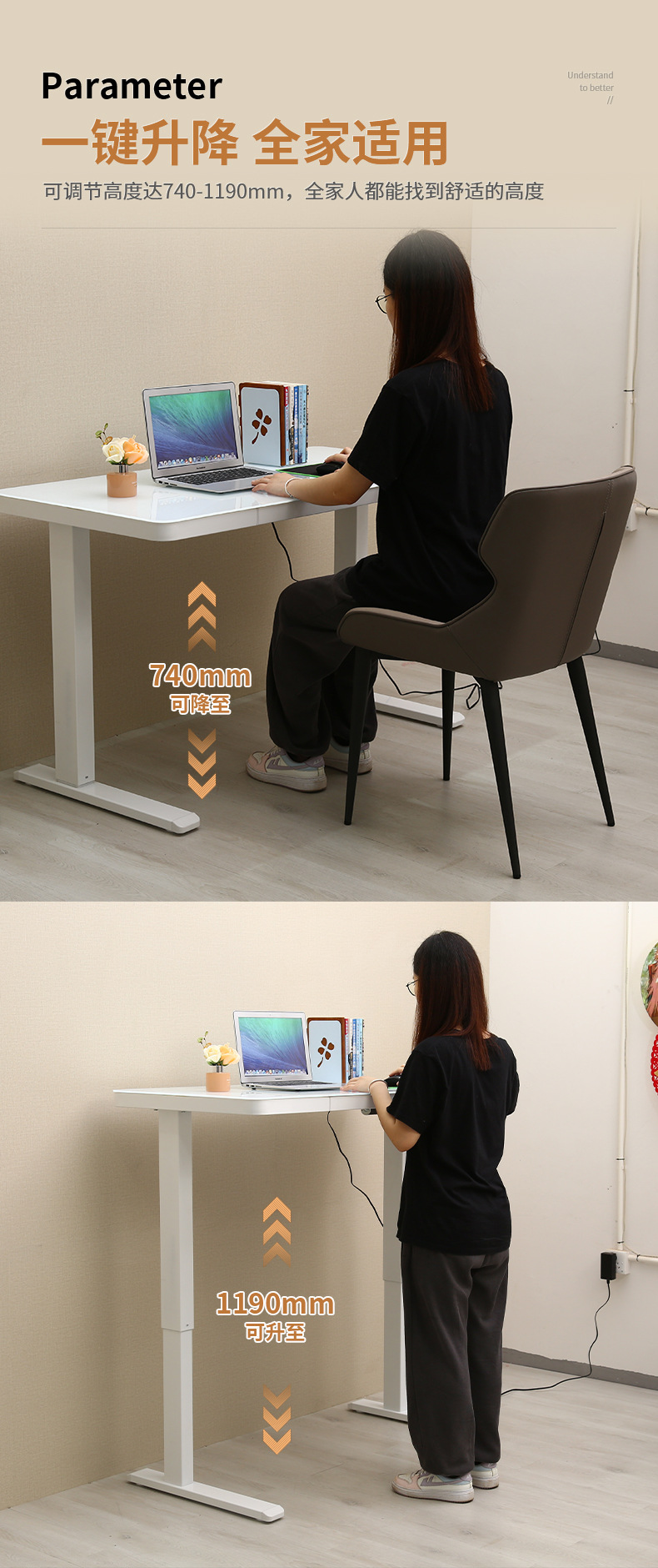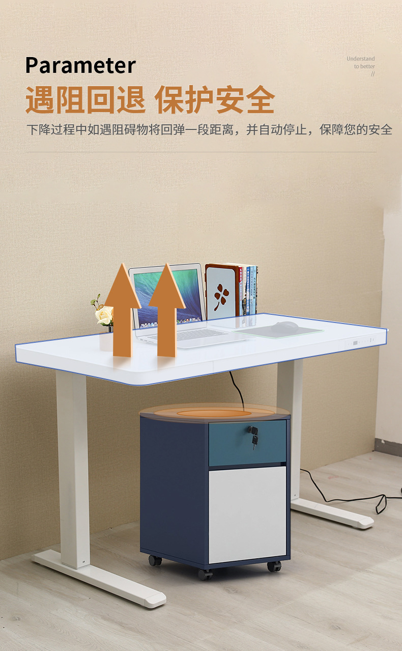 定制加工钢化玻璃桌面电动升降桌电脑桌台式带抽屉智能办公桌家用