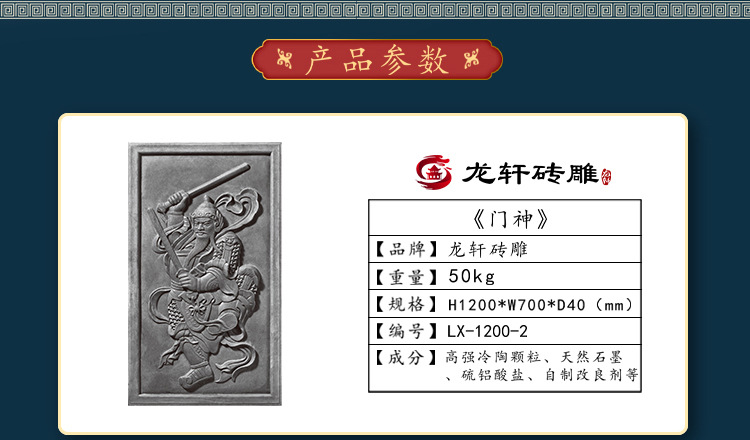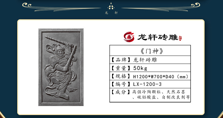 仿古砖雕门神砖雕酒店餐厅古建门口装饰别墅中式庭院