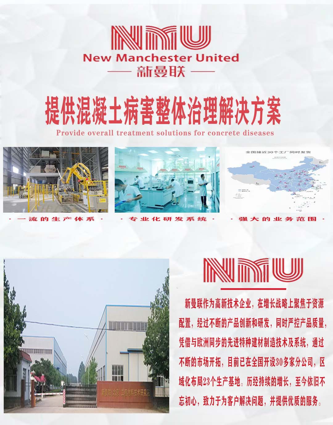 新曼联(北京)工程材料技术研究院是专业从事新型建筑材料和工程材料的研究开发、生产销售及施工服务于一体的高新技术企业。主营业务为灌浆材料、特性砂浆、结构加固材料、砼外加剂、防水防腐材料等。涉及行业有冶金、电力、化工、航天、纺织、核电路桥、市政、工业或民用建筑等领域的设备安装、结构加固、建筑维修等国家重大工程项目中,积累了千余项工程业绩,其优异的产品质量和完善的技术服务受到了客户的一致好评。