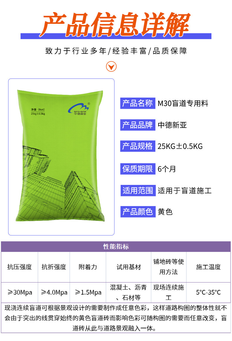 M30盲道用施工材料 盲道板现浇盲道加铺盲道人行道步道砂浆