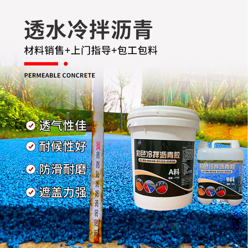 高粘型彩色透水冷拌沥青胶水防滑路面粘合剂聚氨酯胶粘剂石厂家