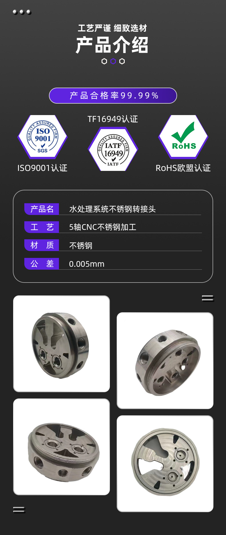 医疗器械水处理系统不锈钢转接头零件加工5轴CNC机加工不锈钢铸件