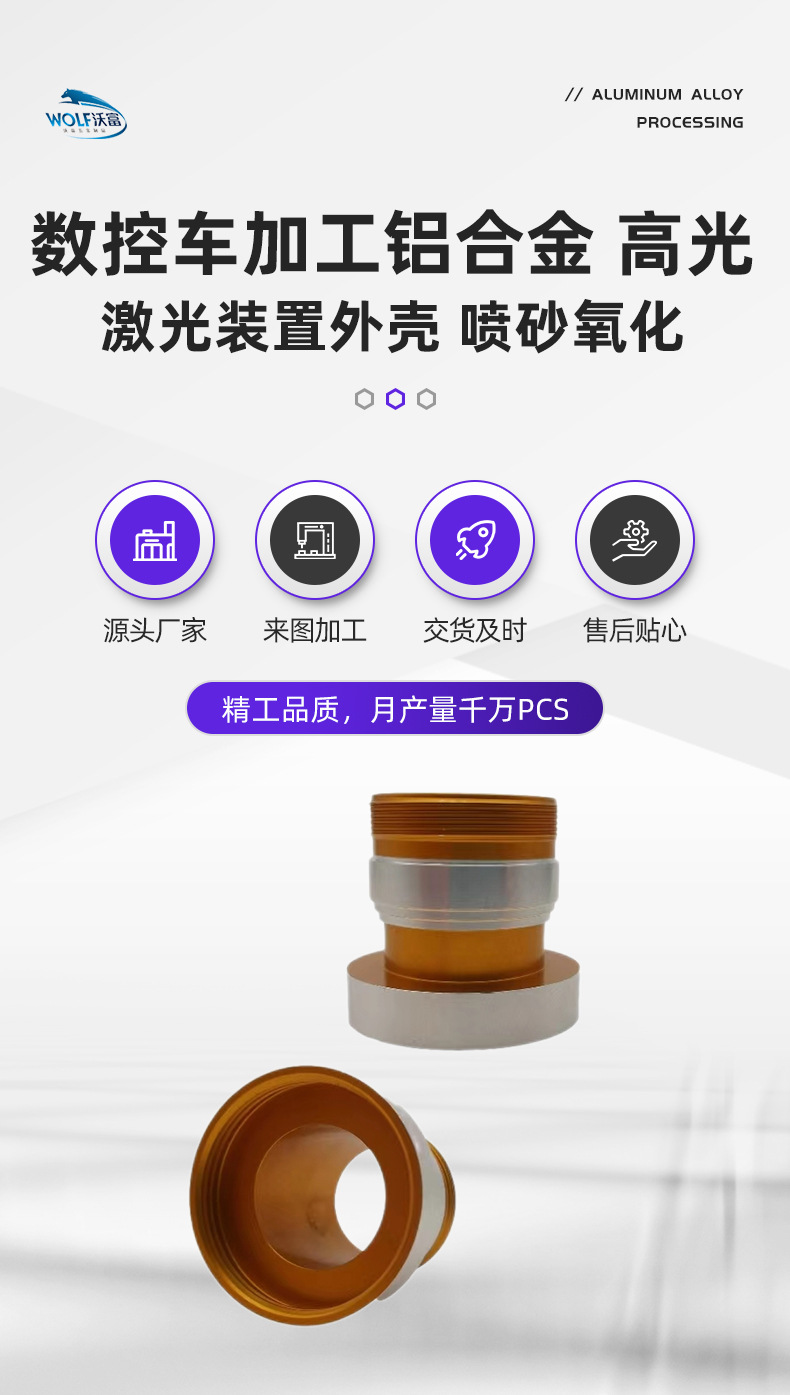 数控车床五金加工件喷砂氧化高光铝合金激光装置外壳数控车床加工