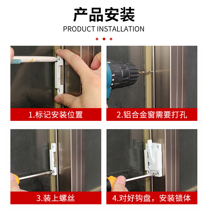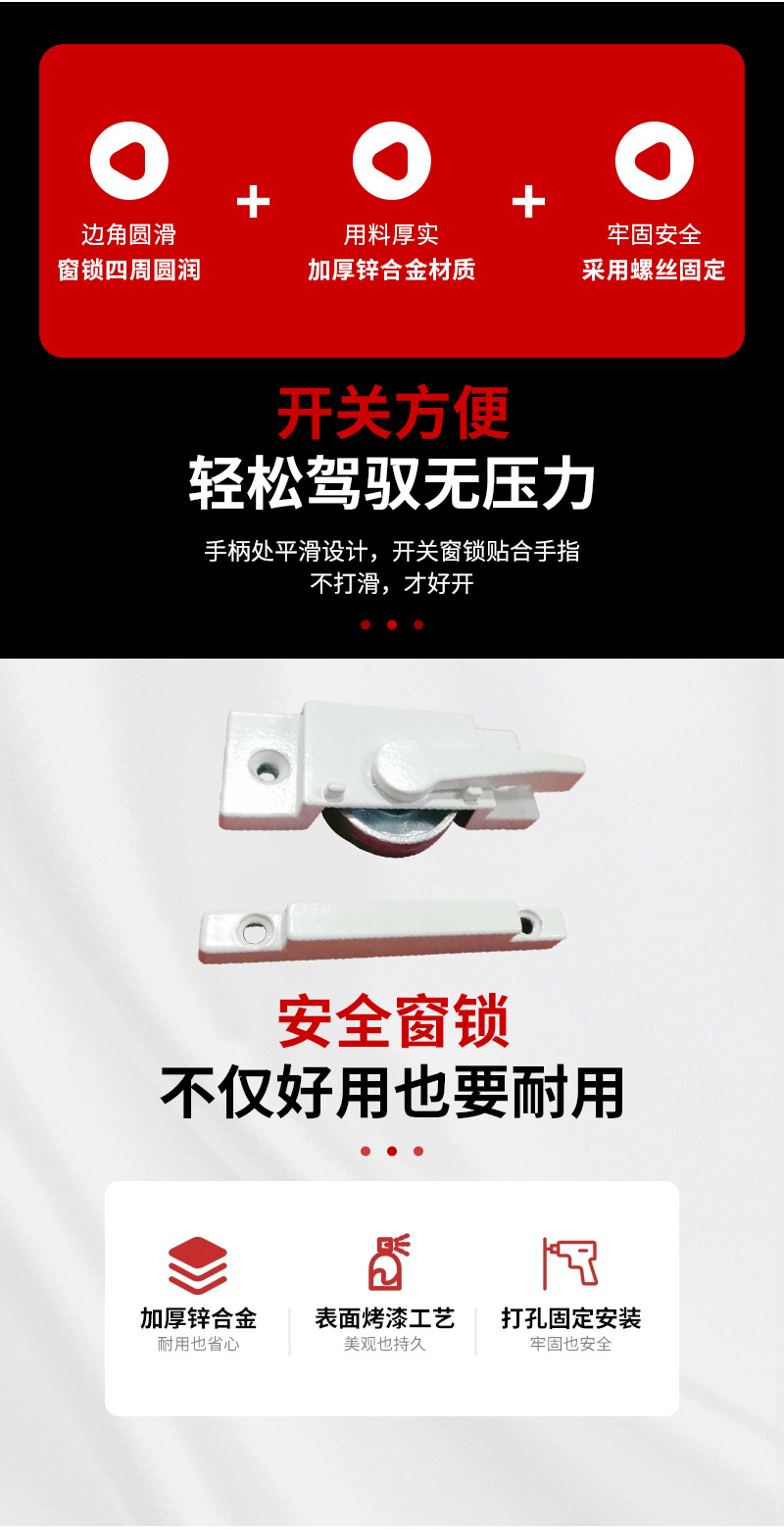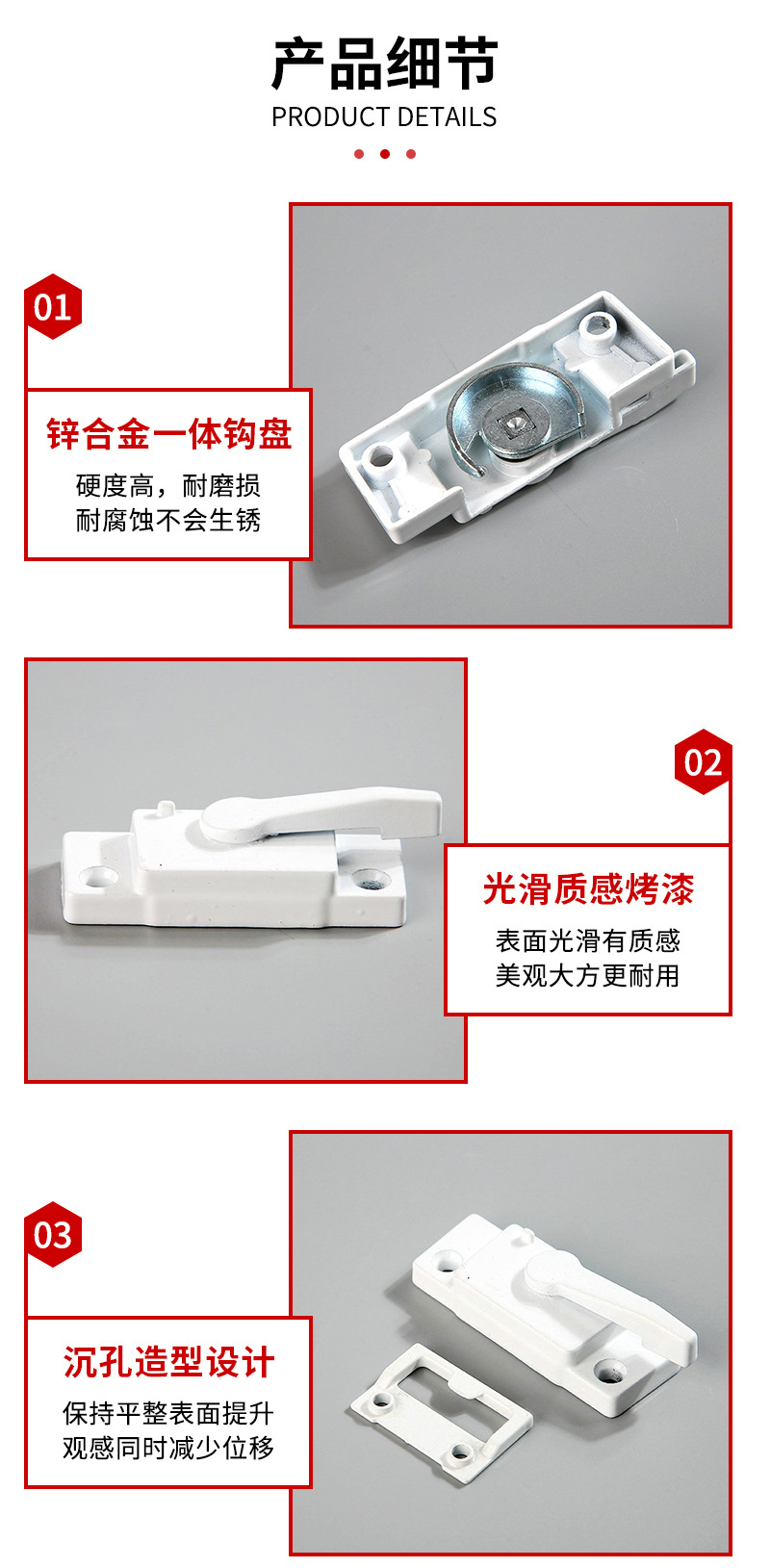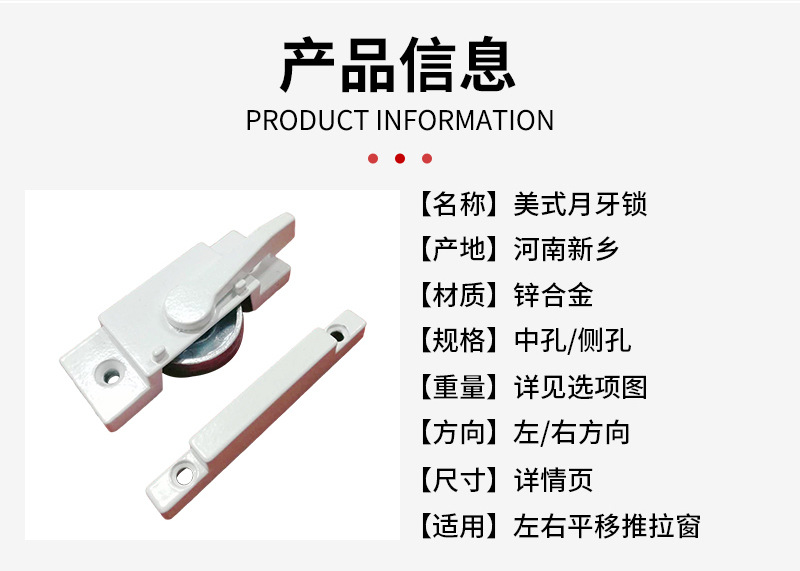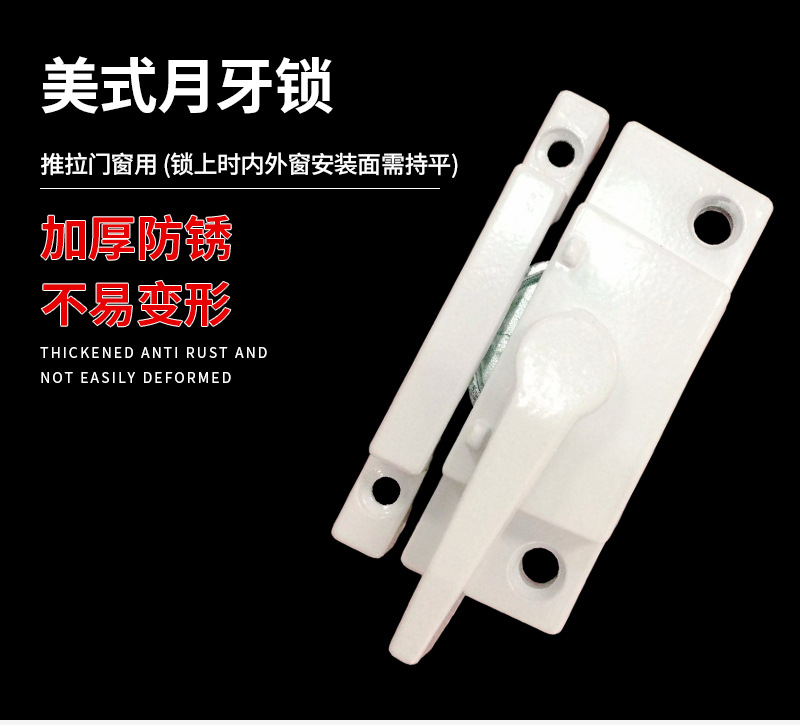 美式月牙锁老式塑钢门窗月牙锁白色方形锁推拉窗户锁扣移窗锁配件
