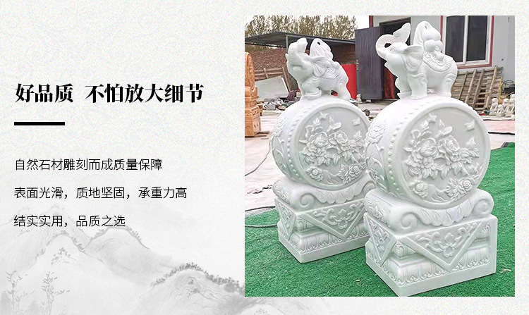 石雕汉白玉门墩抱鼓石摆件一对 别墅庭院门口门墩狮子貔貅镇宅