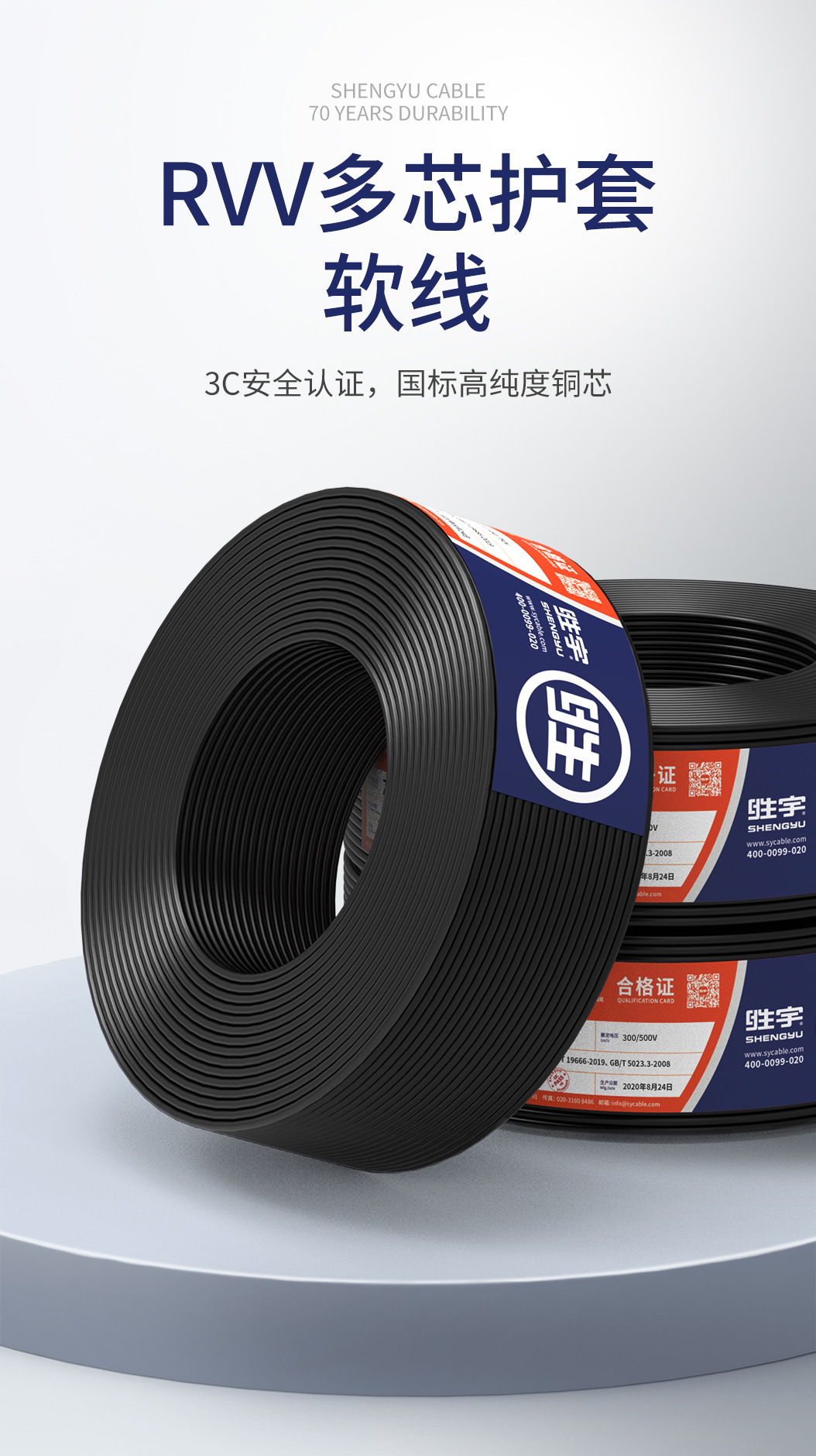 阻燃RVV国标电源线2 3 4 5芯1 1.5 2.5 4 6平方护套线 电线电缆