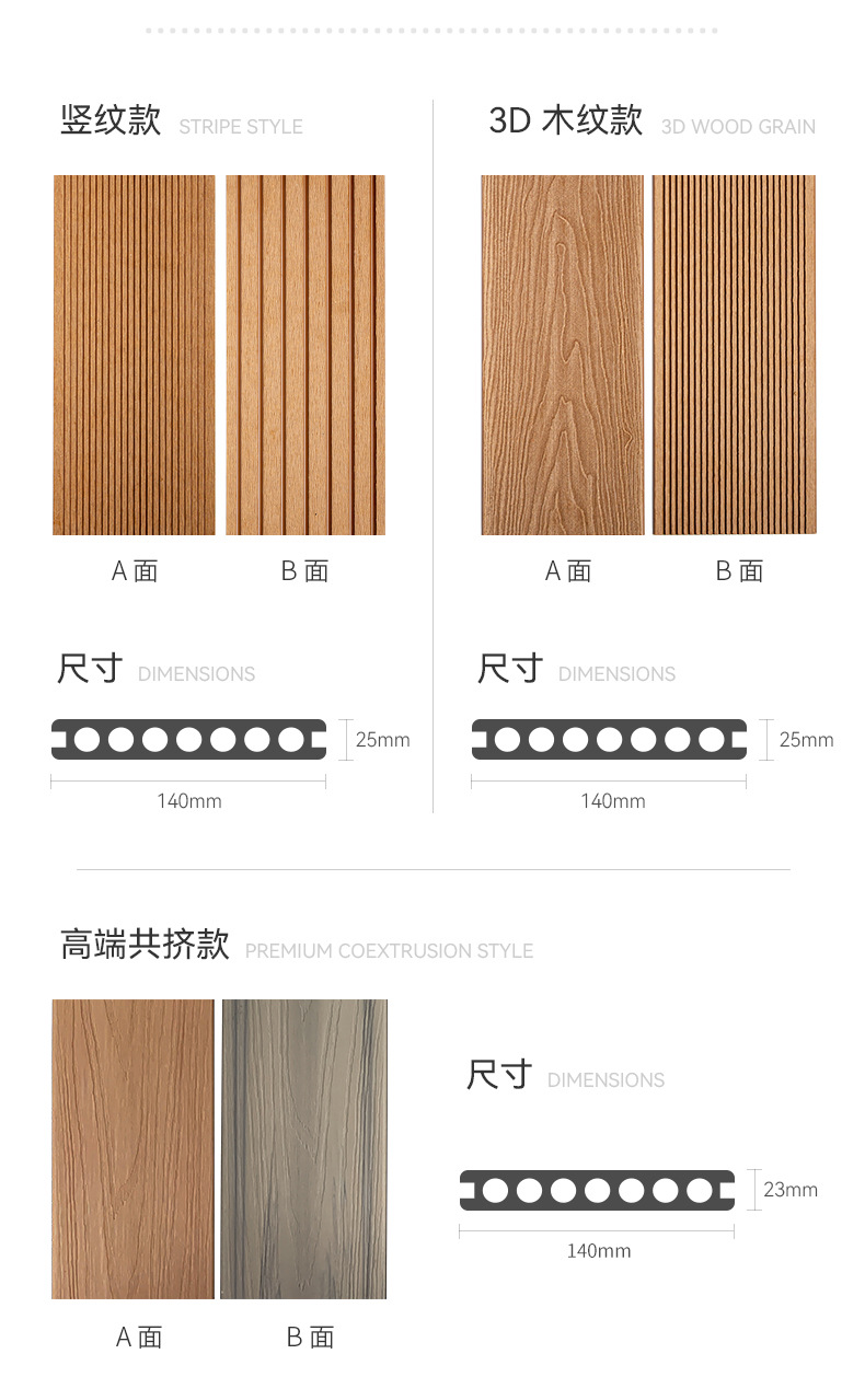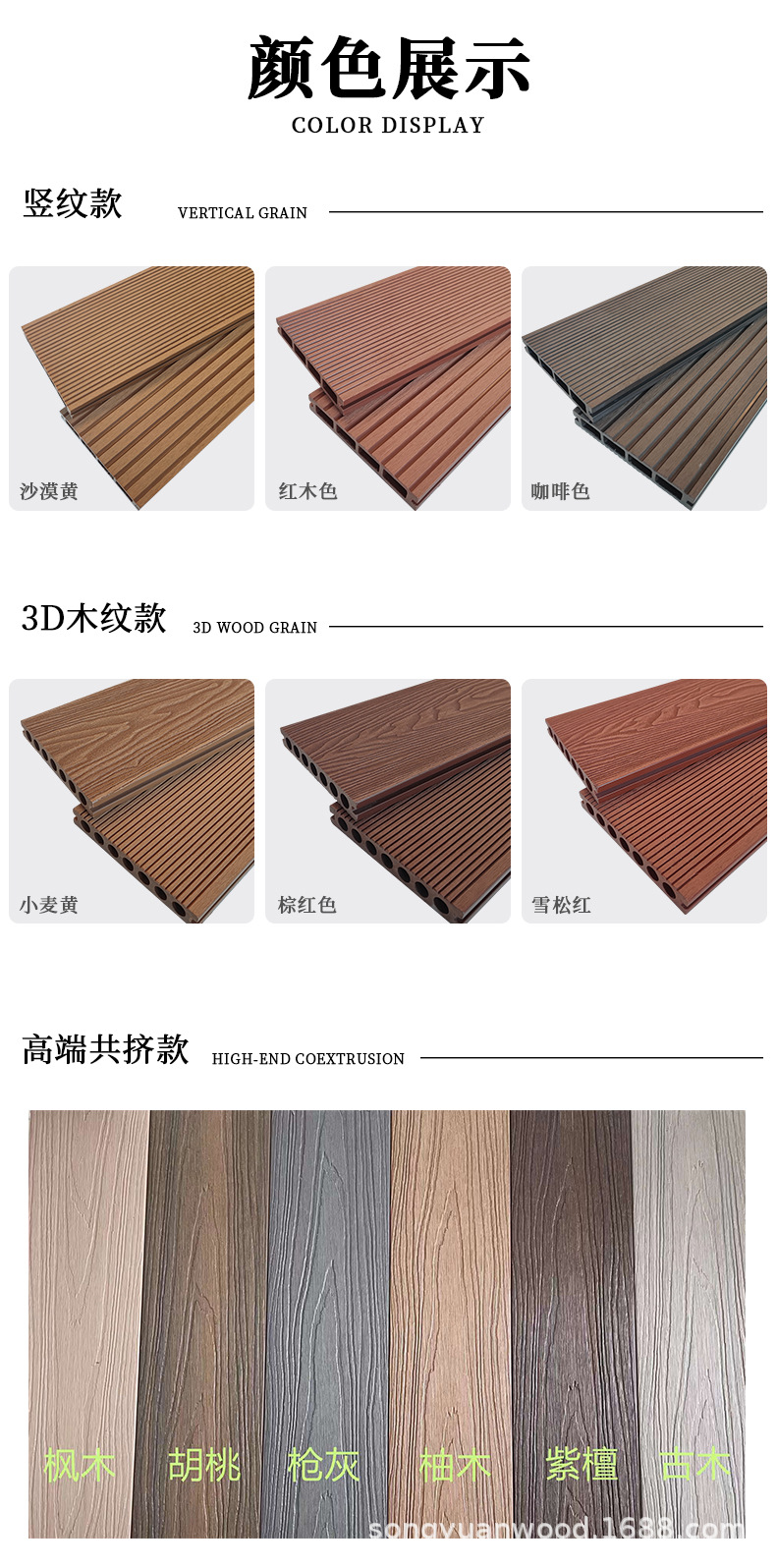 共挤二代塑木圆孔地板户外实心塑木板材防腐压花阳台地板厂家
