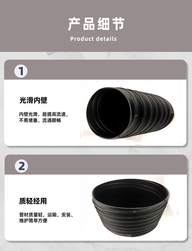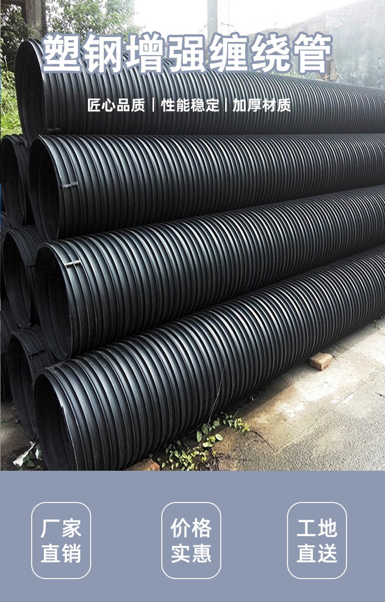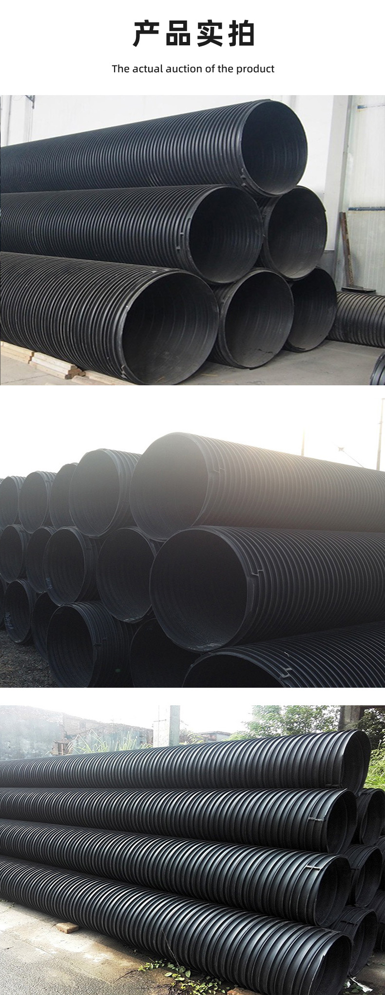 HDPE塑钢缠绕管 道路排水用黑色螺旋排污管 加强型钢带管