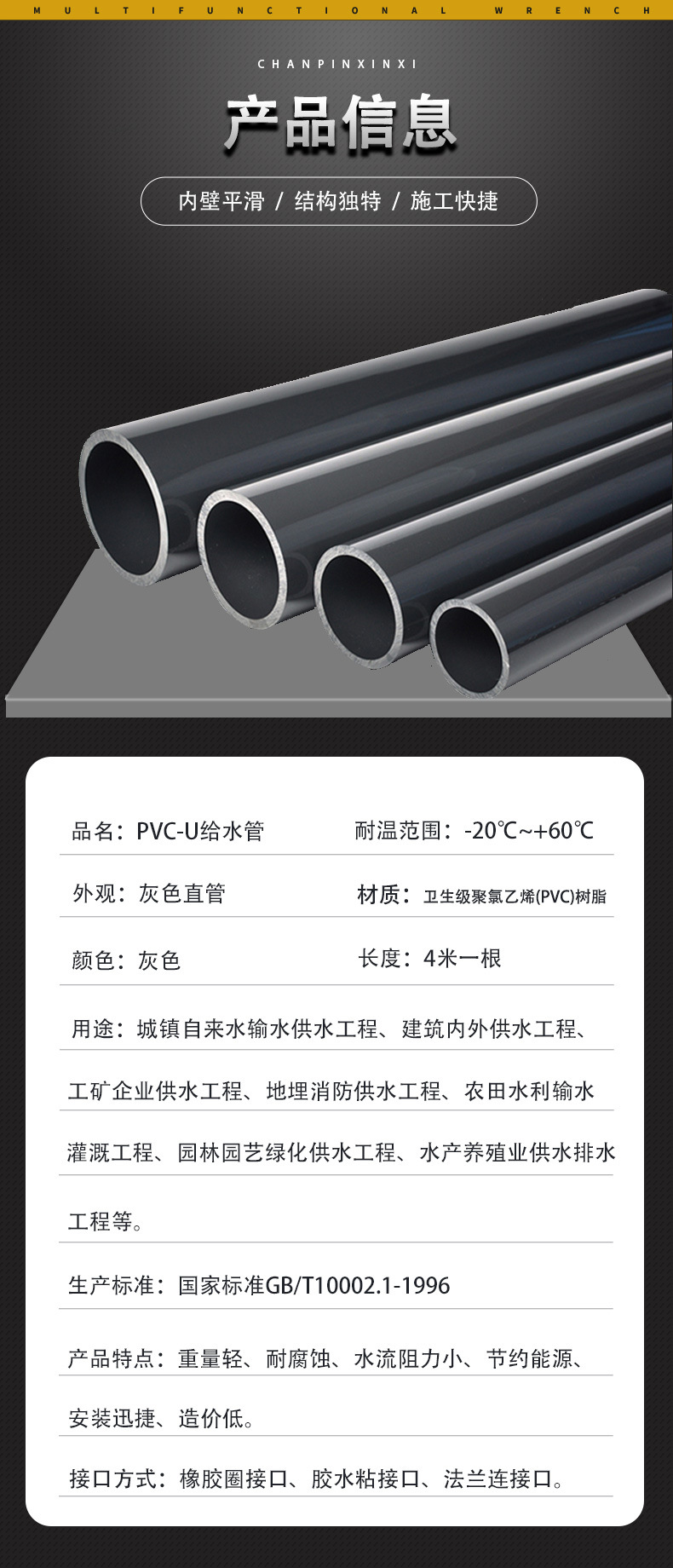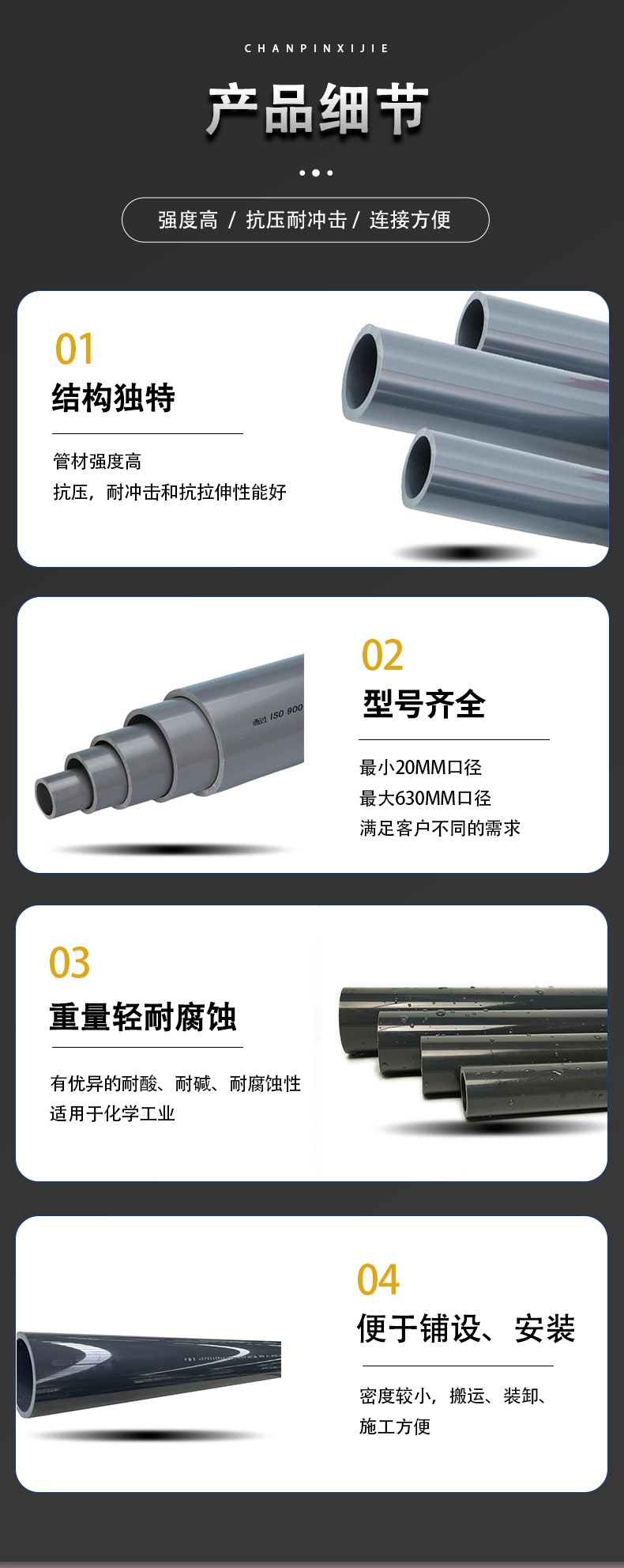 PVC-U给水管DN110输水灌溉管材upvc农田灌溉管生产厂家