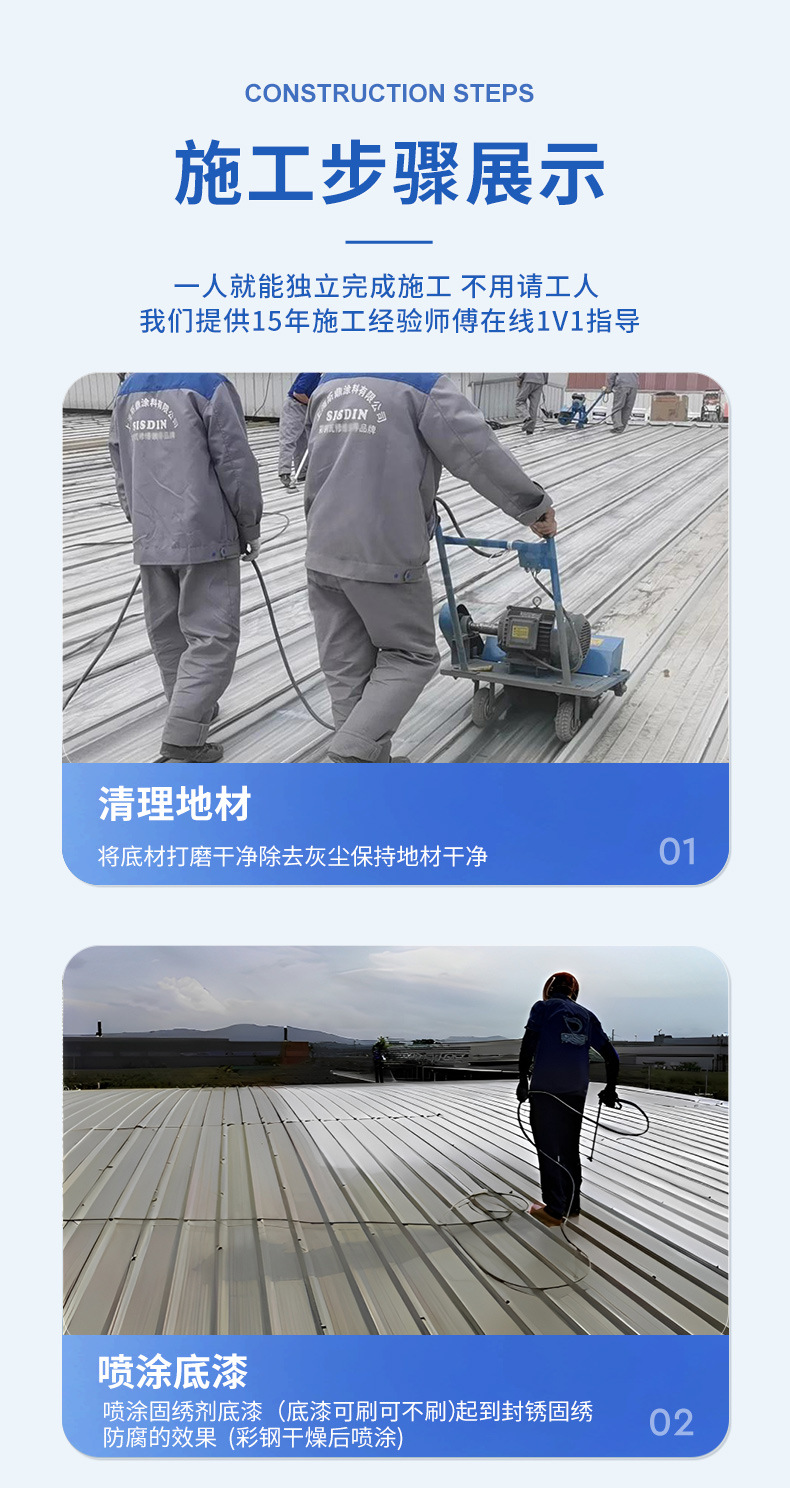 彩钢瓦翻新漆免除锈屋顶专用防水防锈漆水性工业漆户外 厂房金属漆