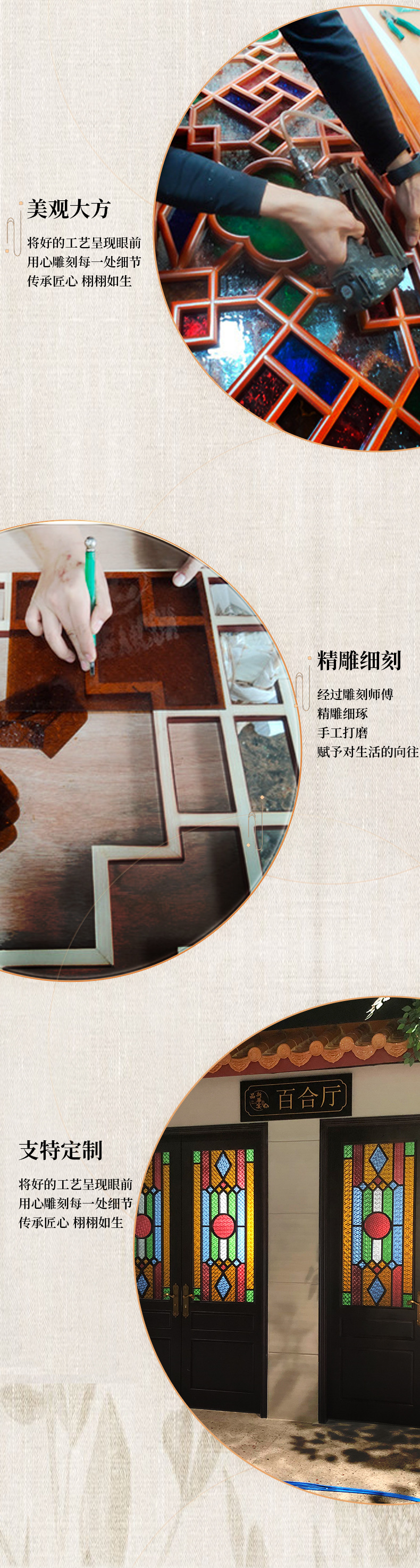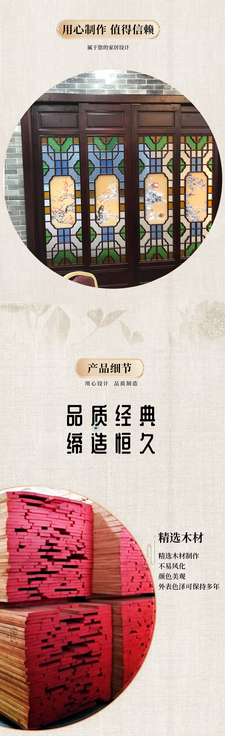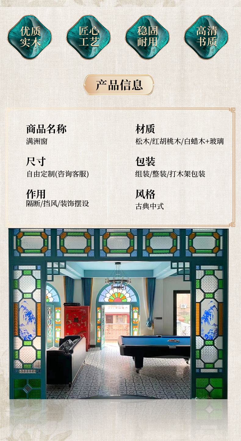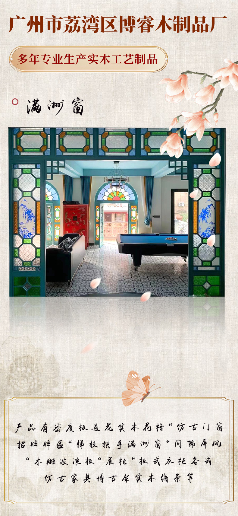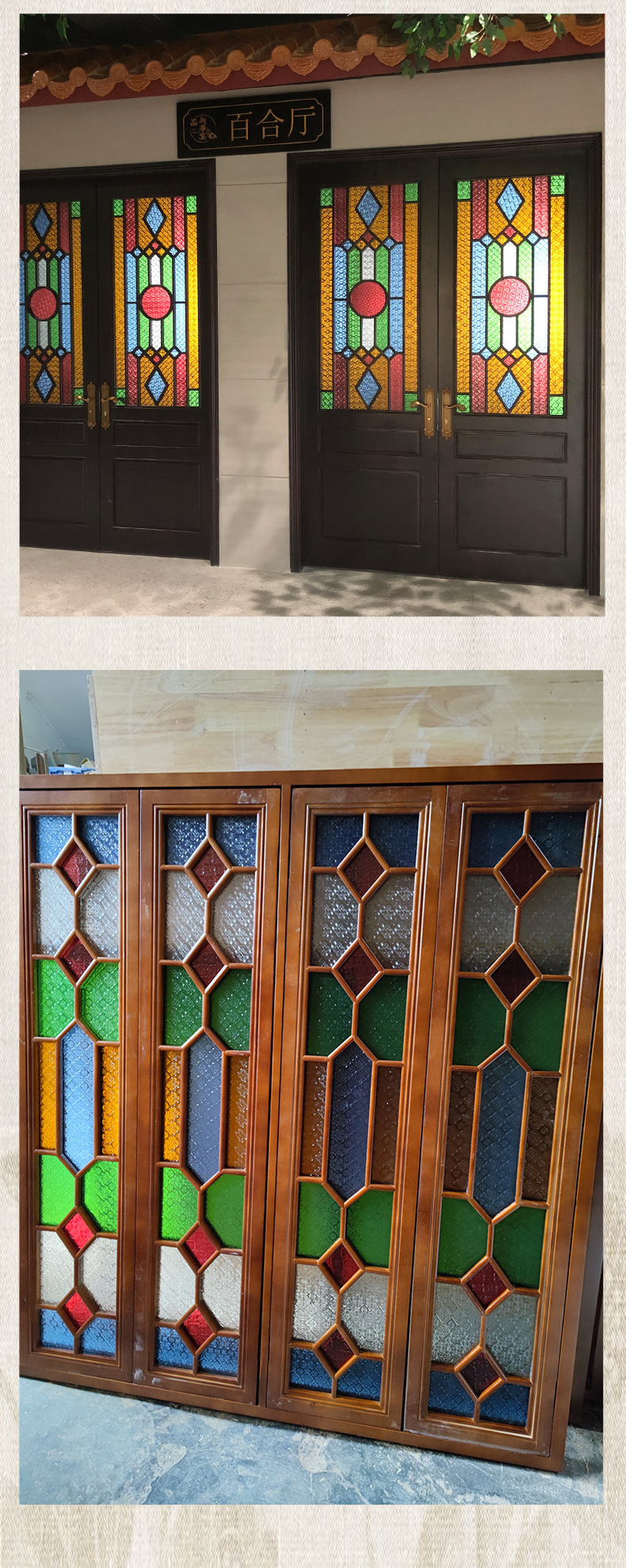 支持定制 满洲窗西关风格海棠花彩色玻璃仿古门窗新中式实木花窗