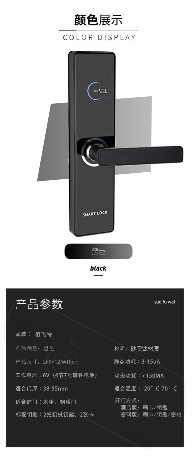 宾馆黑色刷卡锁连锁酒店磁卡锁 公寓民宿电子房门锁感应ic卡锁
