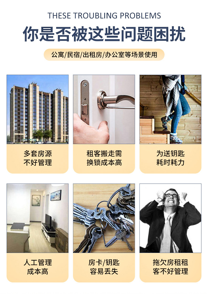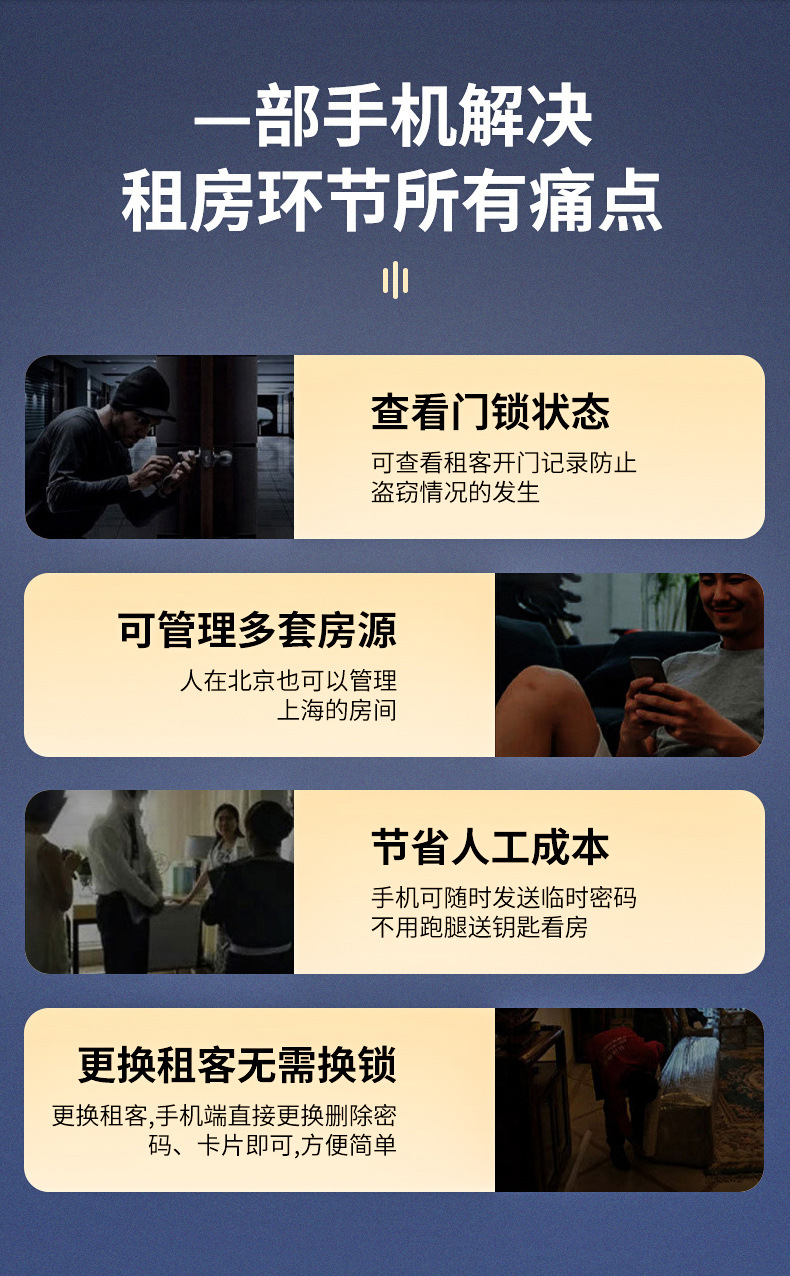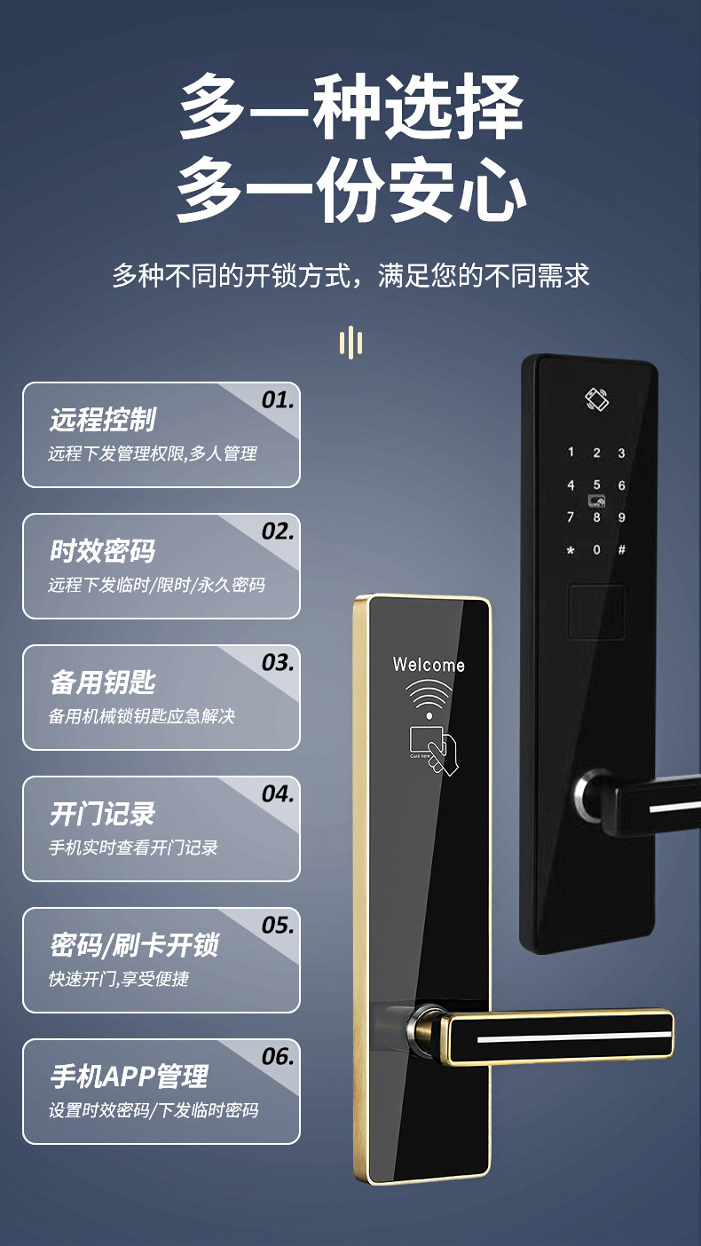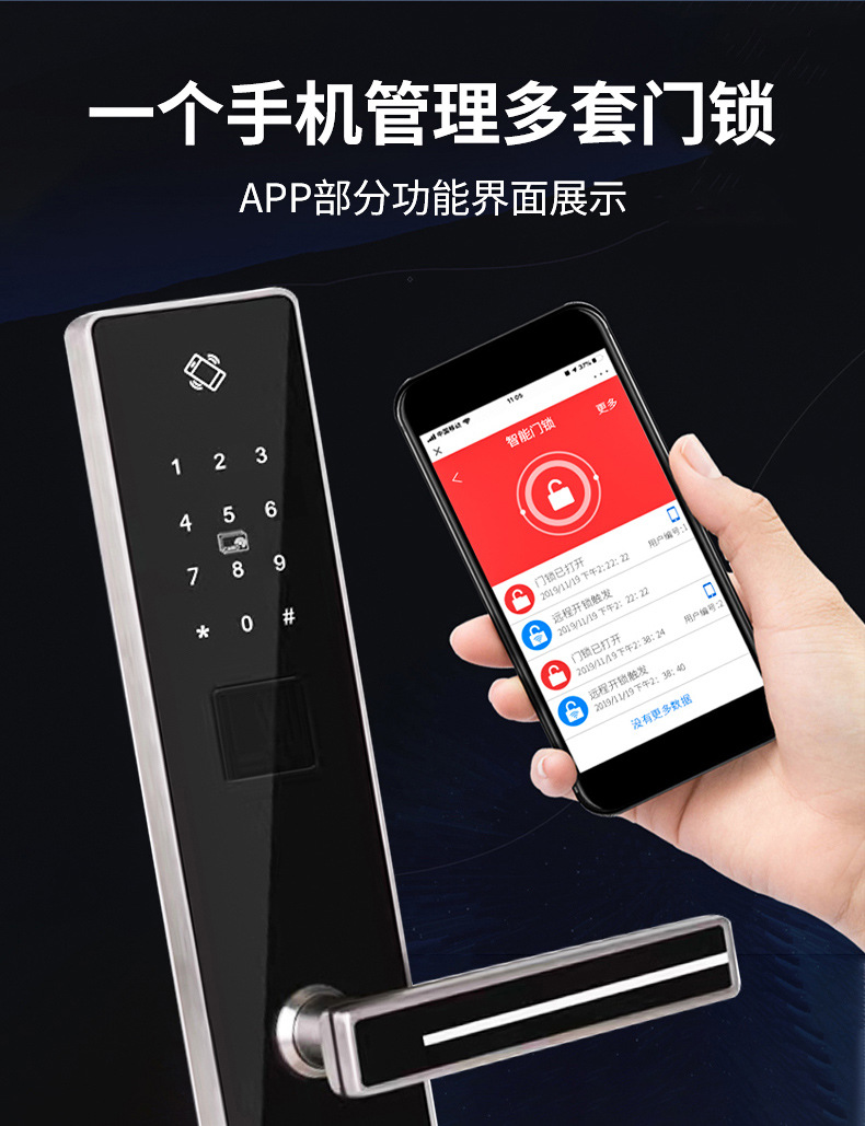 酒店宾馆公寓APP远程密码锁通通锁 民宿出租房电子锁刷卡智能锁