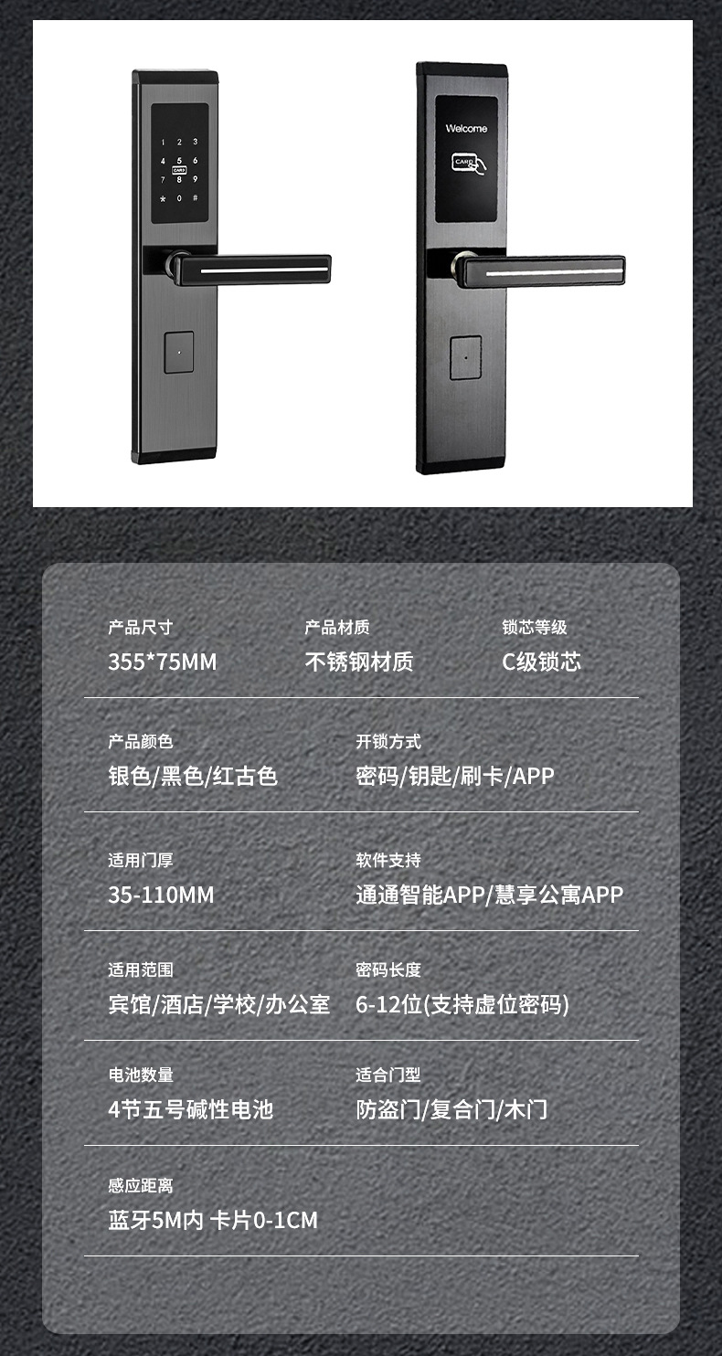 家用酒店宾馆磁卡感应刷卡锁 公寓密码锁出租房远程通通锁 智能锁