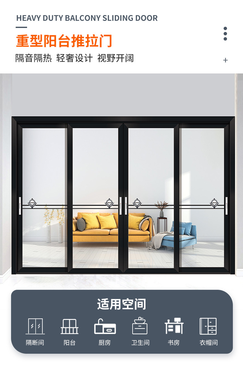 50重型铝合金推拉门重型门阳台门封窗室内阳台隔断金属移门