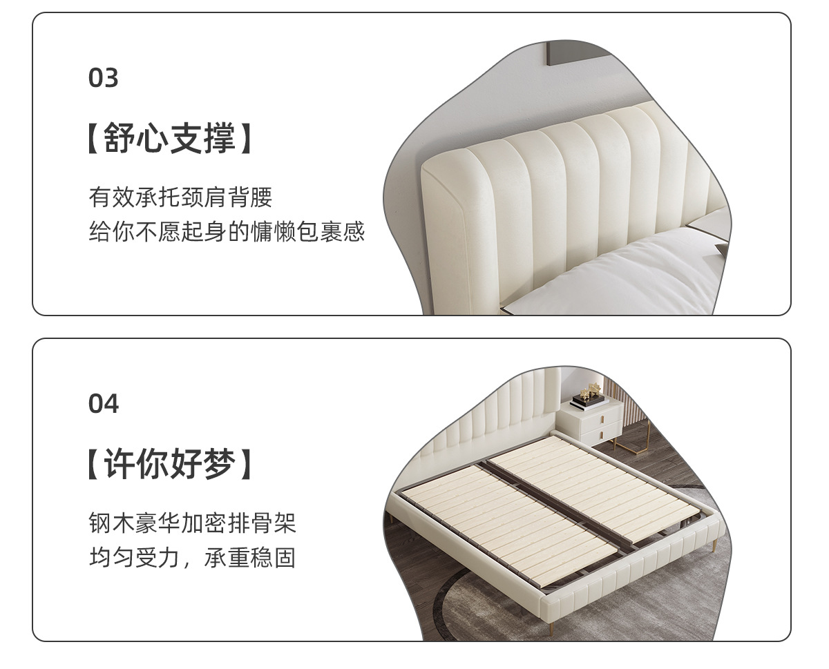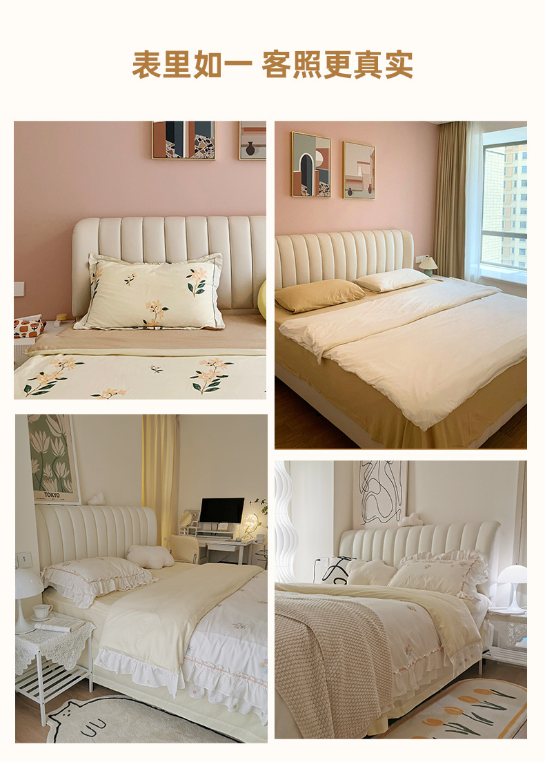 轻奢极简皮艺软床主卧1.8米双人公主床1.5现代简约北欧头层真皮床