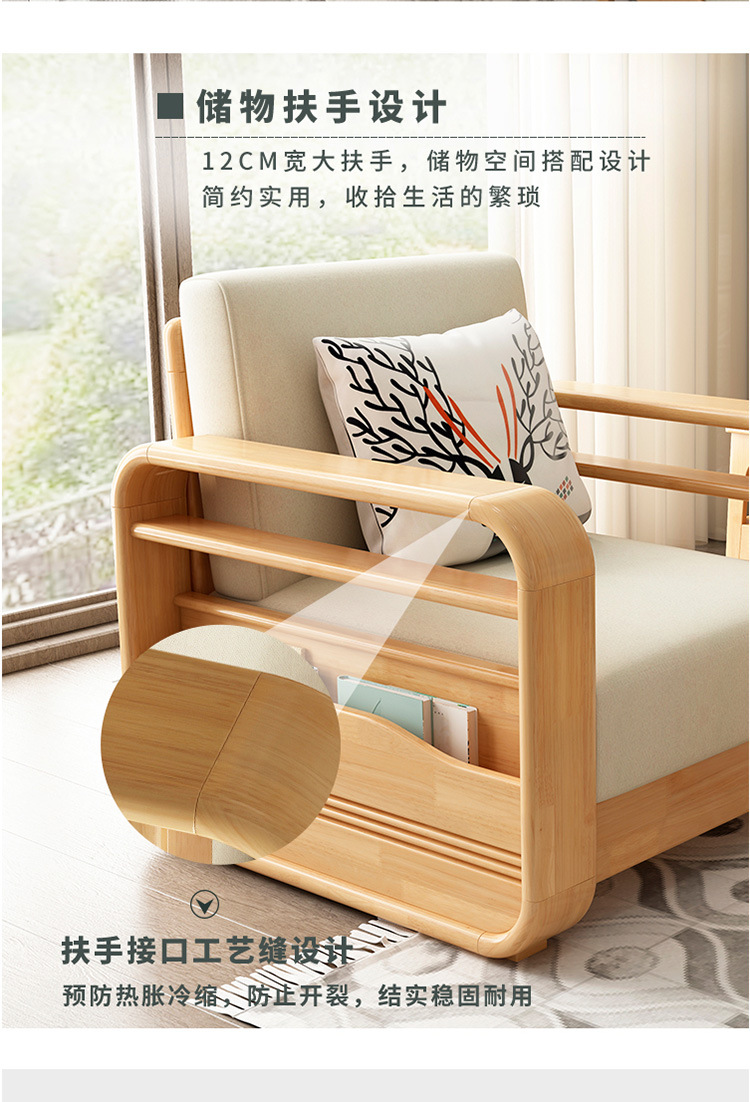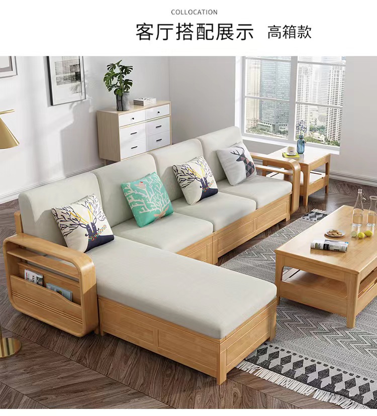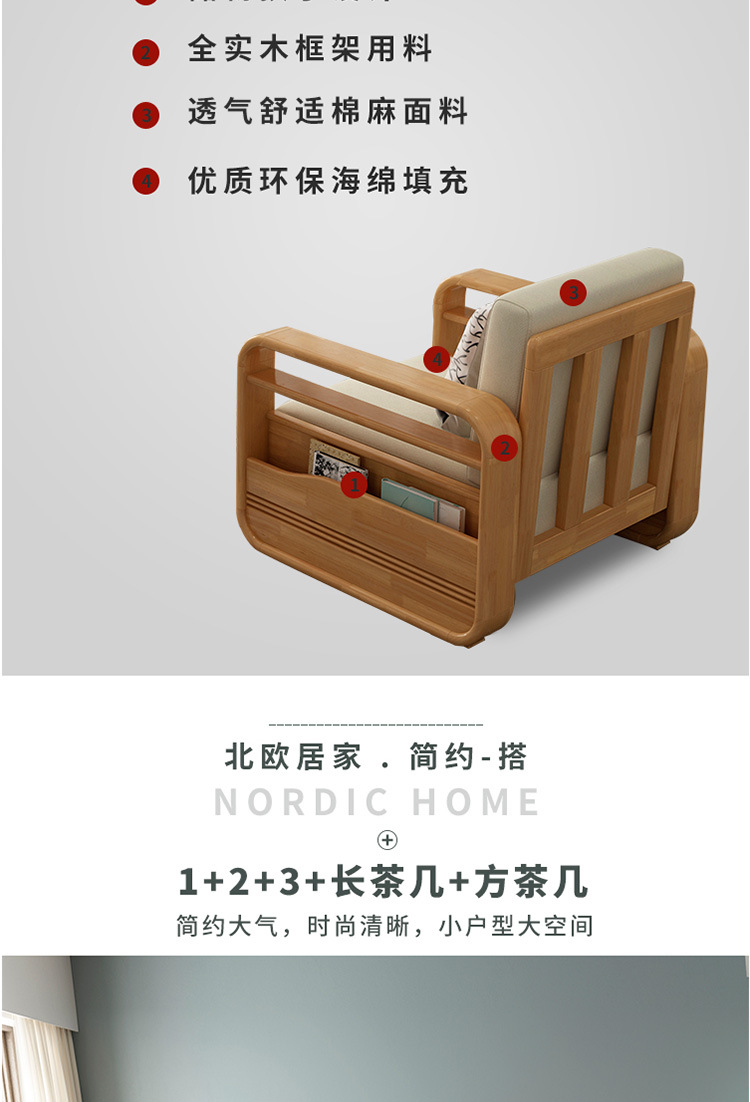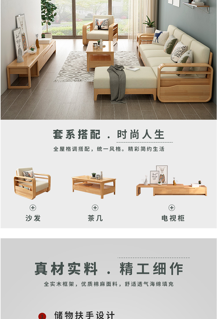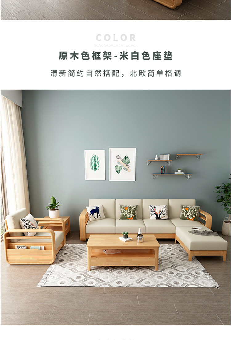 北欧实木沙发组合贵妃转角客厅小户型家用现代简约沙发橡胶木材质
