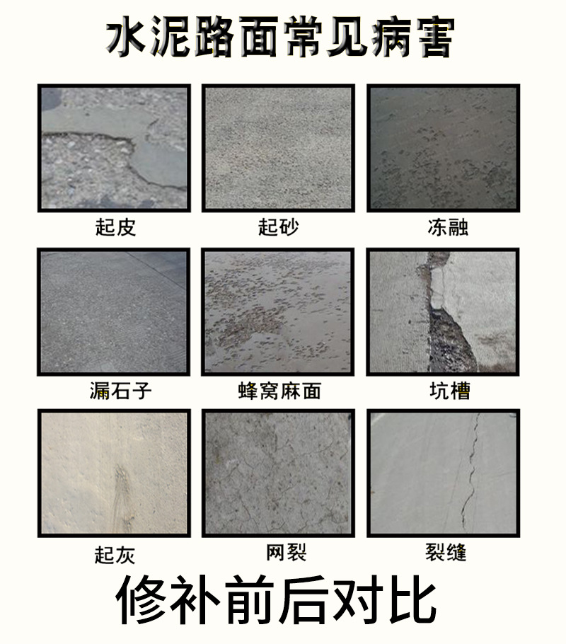 高强度水泥道路起砂快速修补料地面砂浆裂缝修复剂路面抗裂混凝土