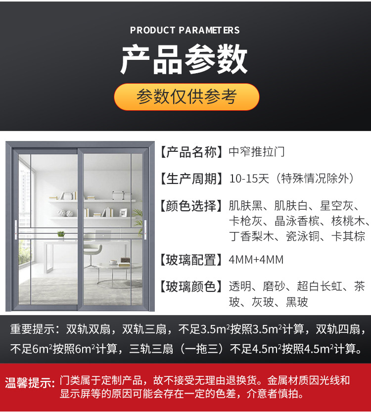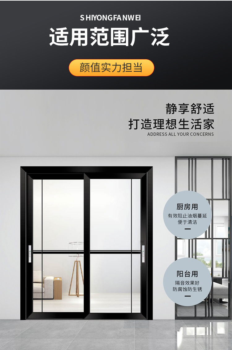 厨房推拉门双层钢化玻璃室内门钛镁铝合金客厅书房隔断门阳台移门