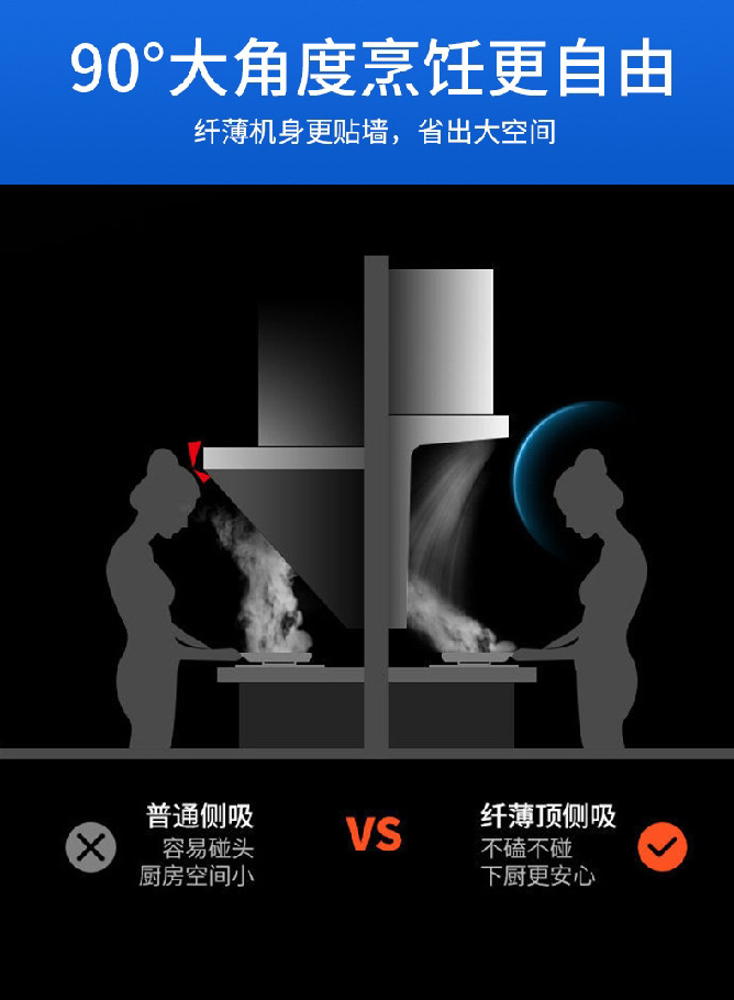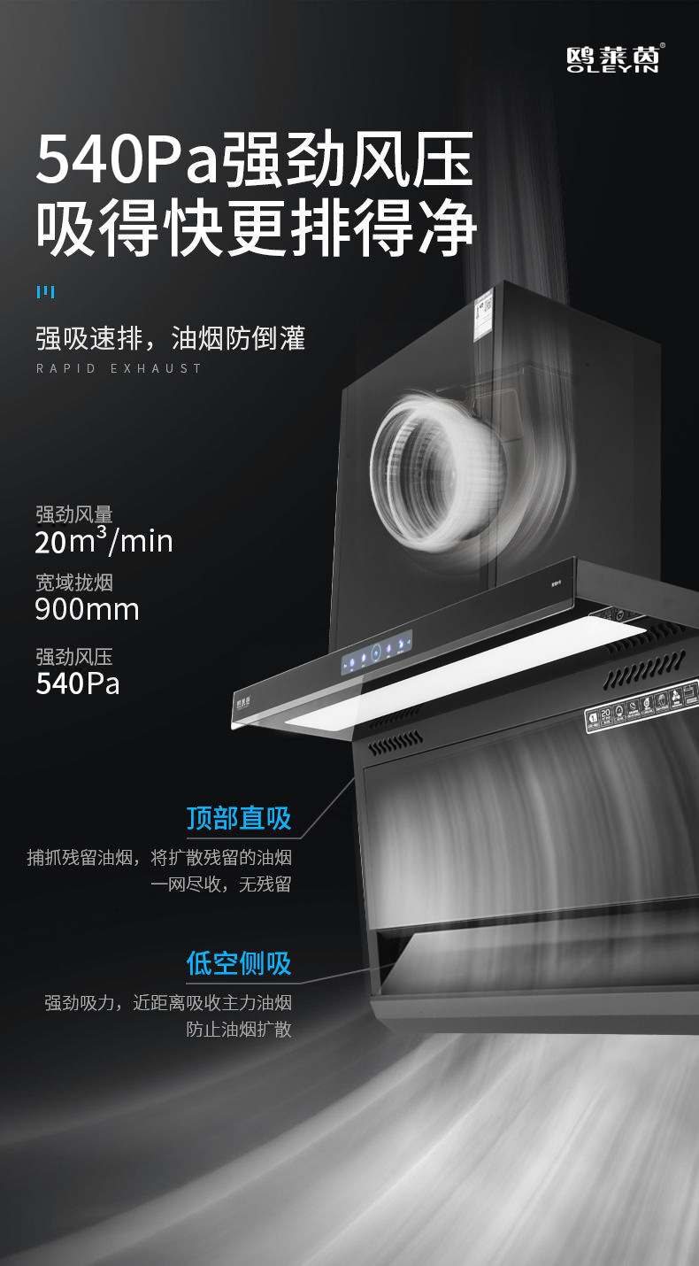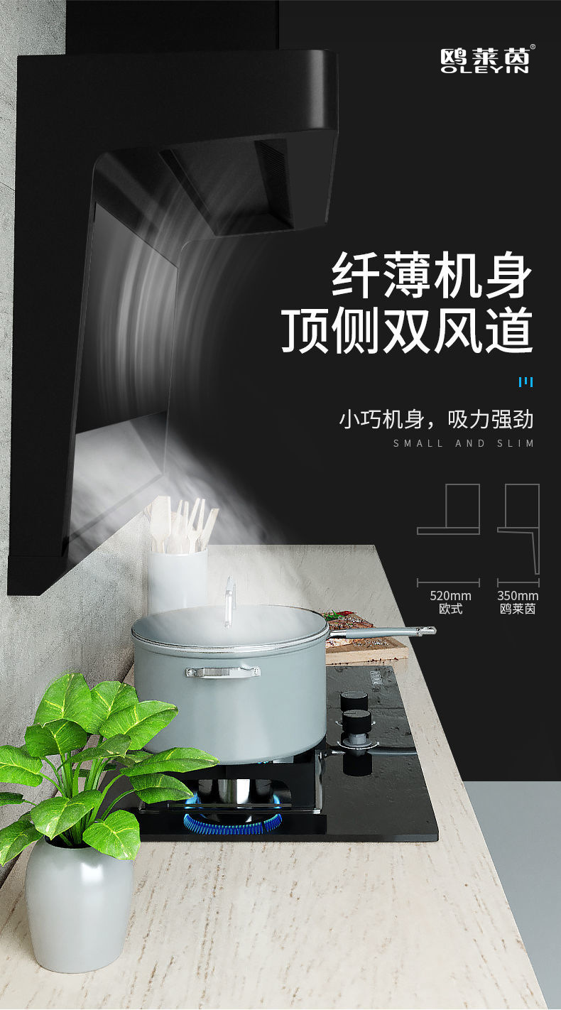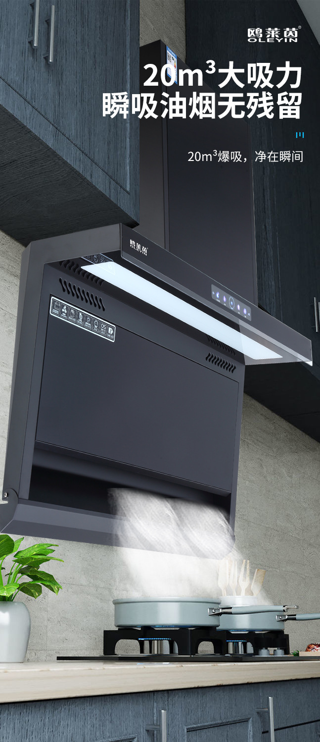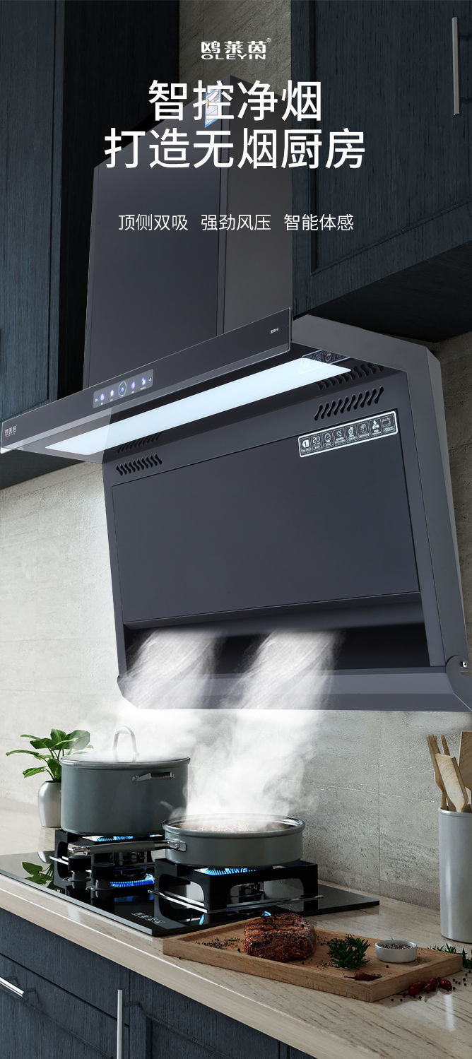 抽油烟机 家用大吸力厨房电器欧式侧吸式7字型体感自动清洗油烟机