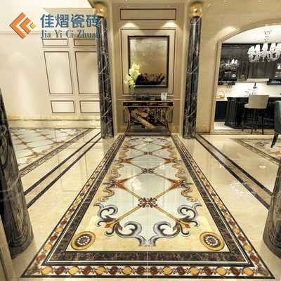 佛山欧式走廊过道入户玄关餐门客厅拼花地砖地毯花瓷砖抛晶地板砖